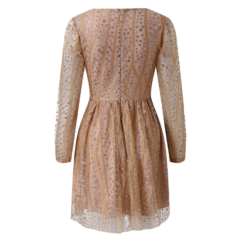 Женское модное платье с глубоким v-образным вырезом и длинным рукавом, платье с блестками, мини-платье с длинным рукавом