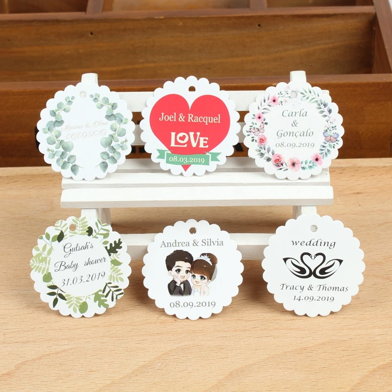 Индивидуальные персонализированные свадебные ярлыки с логотипом на день рождения конфетные коробки ярлыки этикетки пригласительные ярлыки крещение деревенские свадебные аксессуары