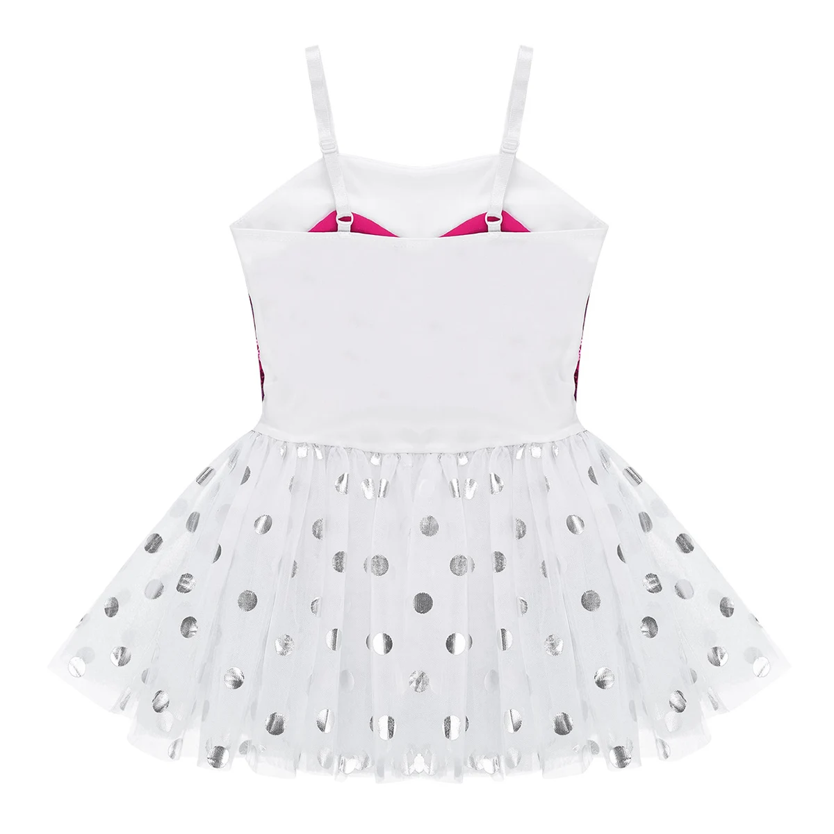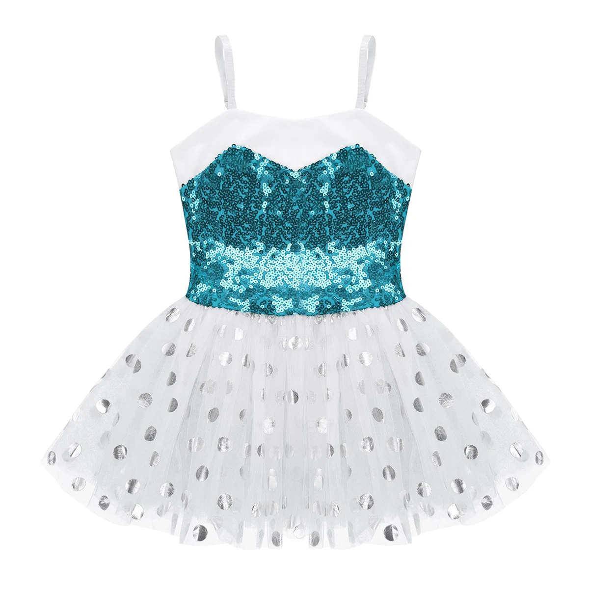 3-Слойная Юбка из сетчатой ткани крепится вокруг талии. Верхний сетчатый слой украшен фольгой в горошек. Красивая Одежда для танцев для вашей девочки.