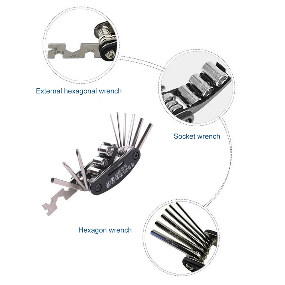 Multifunction Bicycle Repair Combination Tool Kit 16 In Mountain Road Bike Folding Repair Car Tire Wrench Screwdriver Helper Set