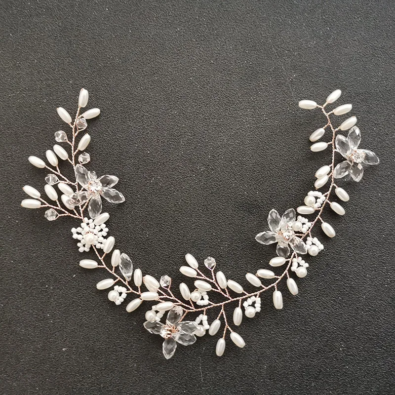 Женский обруч для волос ручной работы, свадебный обруч для волос с жемчугом, стразы с кристаллами
