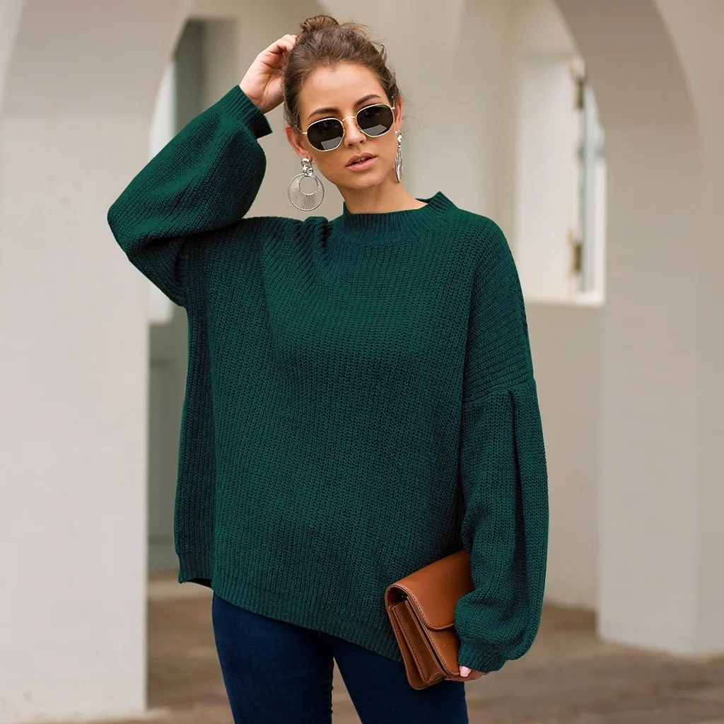 Модный женский трикотажный однотонный пуловер с длинным рукавом и круглым вырезом, футболка, свитер, блузка