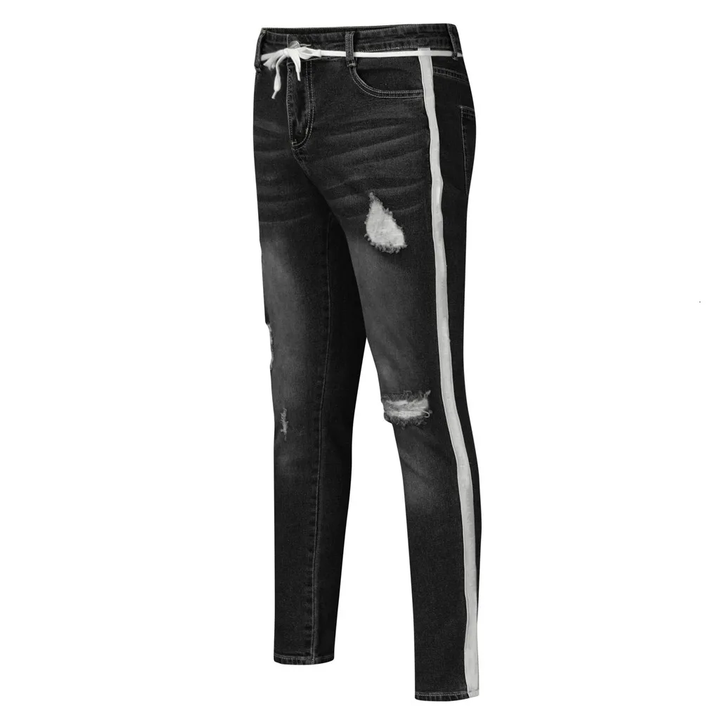 Мужские модные повседневные джинсовые Прямые рваные брюки рваные джинсы длинные брюки