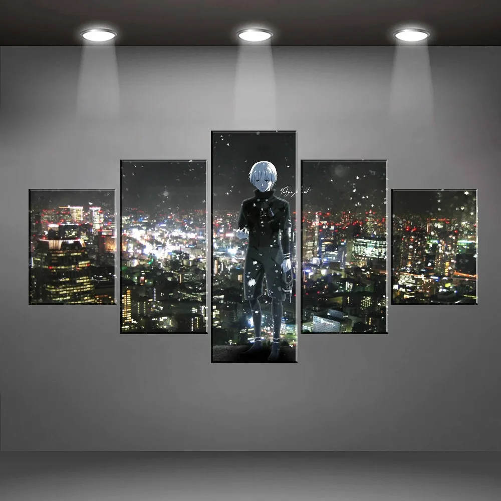 Название = ckeditorКартина на холсте, HD принты, домашний декор, 5 шт., настенное искусство, Токийский Гуль, анимация, модульные картины для гостиной, художественный мультяшный плакат