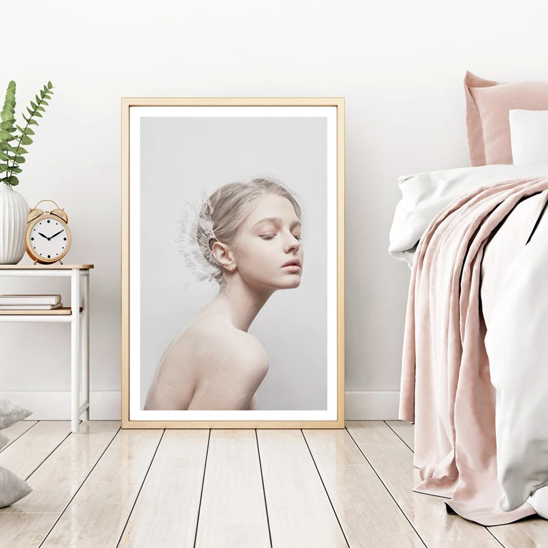 NordicPoster принт скандинавские стены картина стиль Искусство Холст Картина Реалистичная девушка листья растение для гостиной современный декор