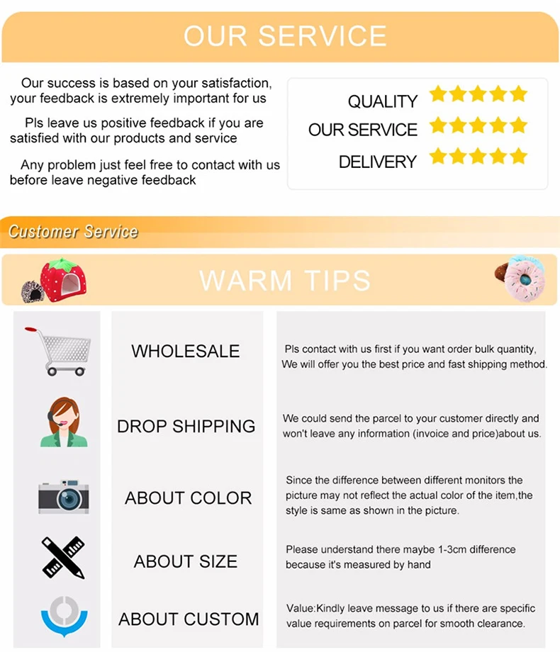 Если вы удовлетворены нашей продукцией, Мы будем признательны, что вы дадите нам 5 звезд положительные отзывы. Пожалуйста, свяжитесь с нами, прежде чем оставить отрицательный или нейтральный отзывы, мы можем работать вместе, чтобы избежать любых споров. Ваша поддержка и поддержка-это наш непрерывный импульс. Мы сделаем все возможное для вашего удовлетворения. Если у вас есть какие-либо другие вопросы, пожалуйста, отправьте нам электронное письмо. Большое спасибо.