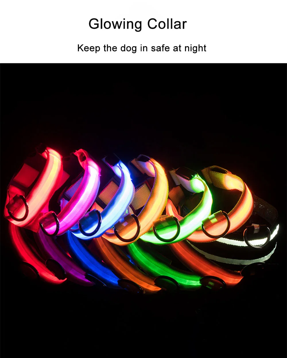 Материал: нейлон Цвет: синий/зеленый/красный/розовый/желтый Режим мигания: Длительное освещение, быстрое мигание. Медленное мигание Батарея: 2 шт. кнопки CR2032 с питанием от батареи (60-80 часов, обычно 2-3 месяца; Батарея может быть заменена, доступны магазины или супермаркеты.) Размеры: S: регулируемая длина: 35-43 см, длина: 43 см, ширина: 2,5 см M: регулируемая длина: 40-48 см, длина: 48 см, ширина: 2,5 см L: регулируемая длина: 45-52 см, длина: 52 см, ширина: 2,5 см XL: регулируемая длина: 52-60 см, длина: 60 см, ширина: 2,5 см