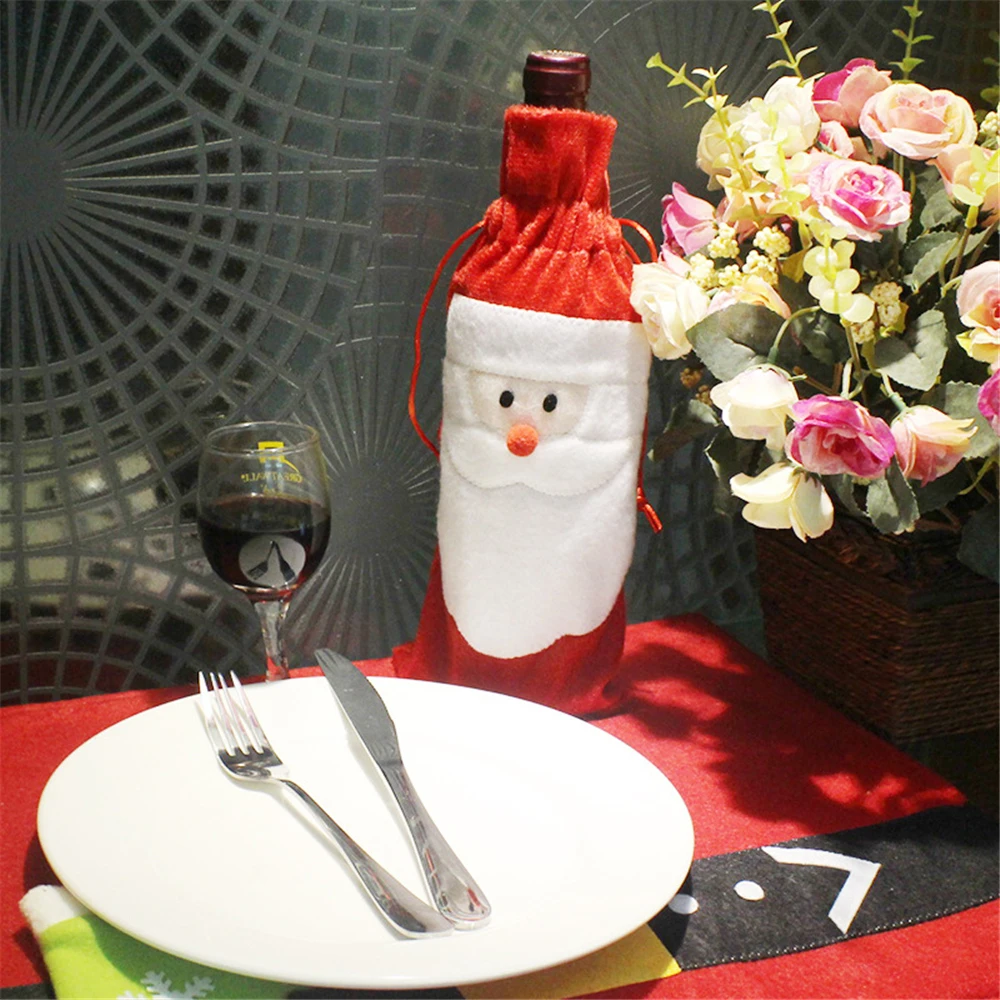 1 шт. Новый год Санта Клаус с принтом «Снеговик» и «олень», крышка для бутылки вина рождественские подарочные сумки держать Рождественский ужин декор дома украшение стола для вечеринки