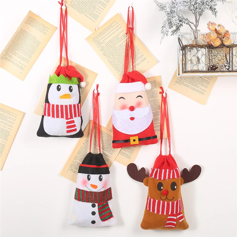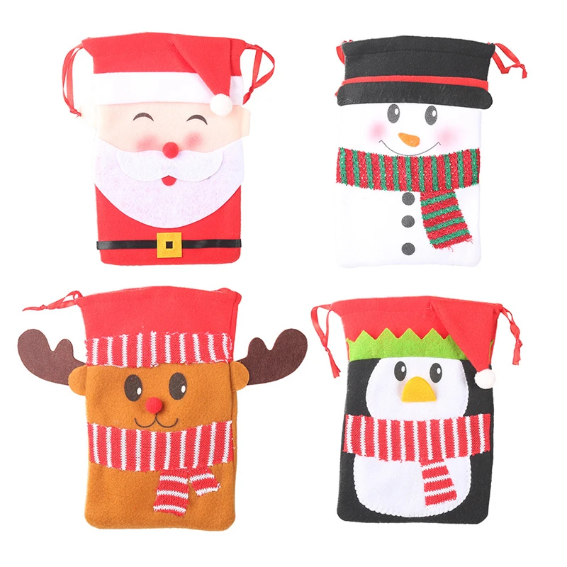 Новогодние рождественские сумки Нетканая вместительная сумка со шнуром Санта Клаус Олень Рождественский детский Подарочный пакет конфеты подарочная сумка ZB005