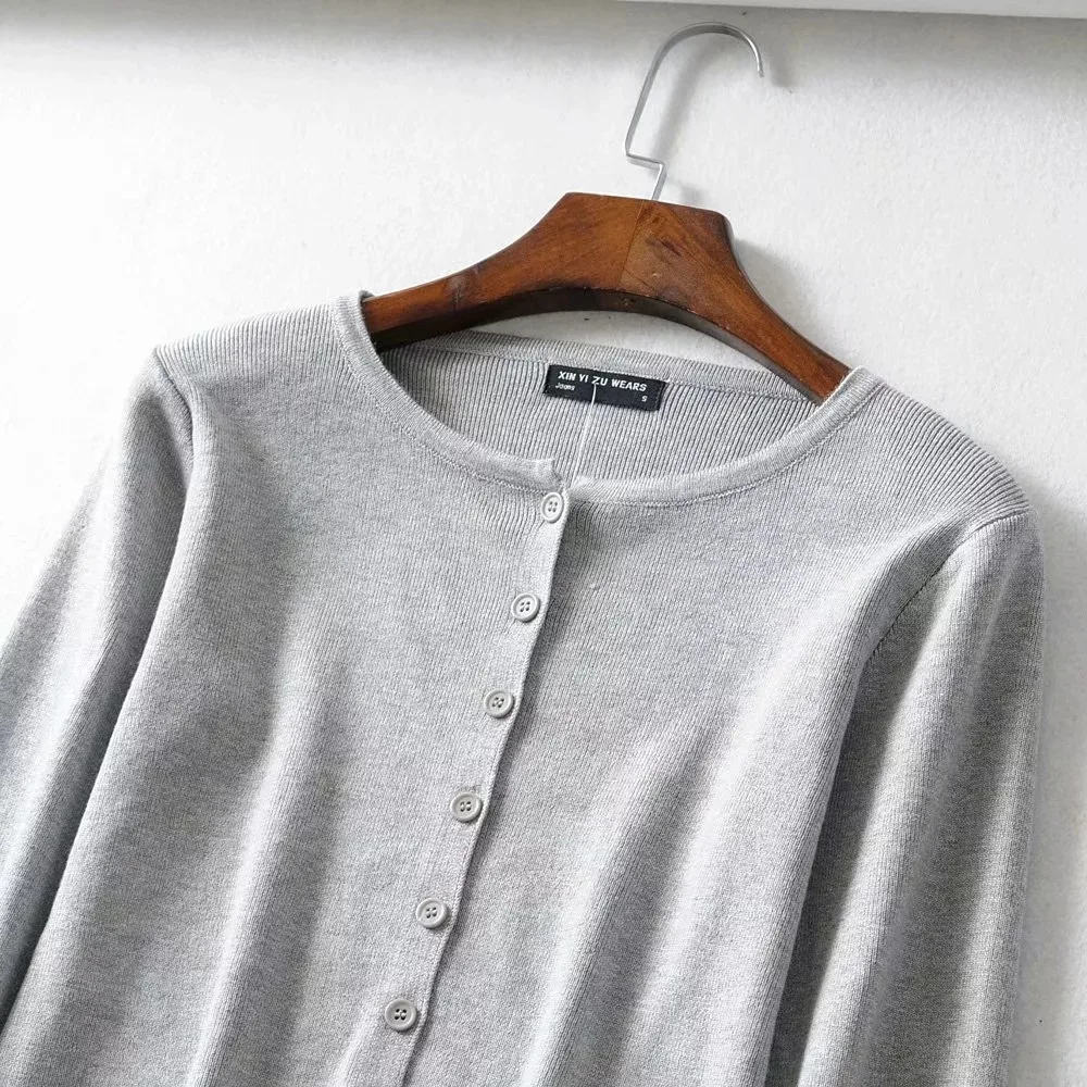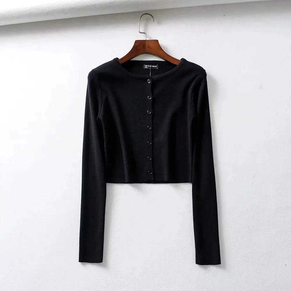 Осень 2019, модные женские базовые кардиганы с длинным рукавом, вязаные свитера, обрезанный топ в Корейском стиле, винтажные однотонные тонкие кардиганы