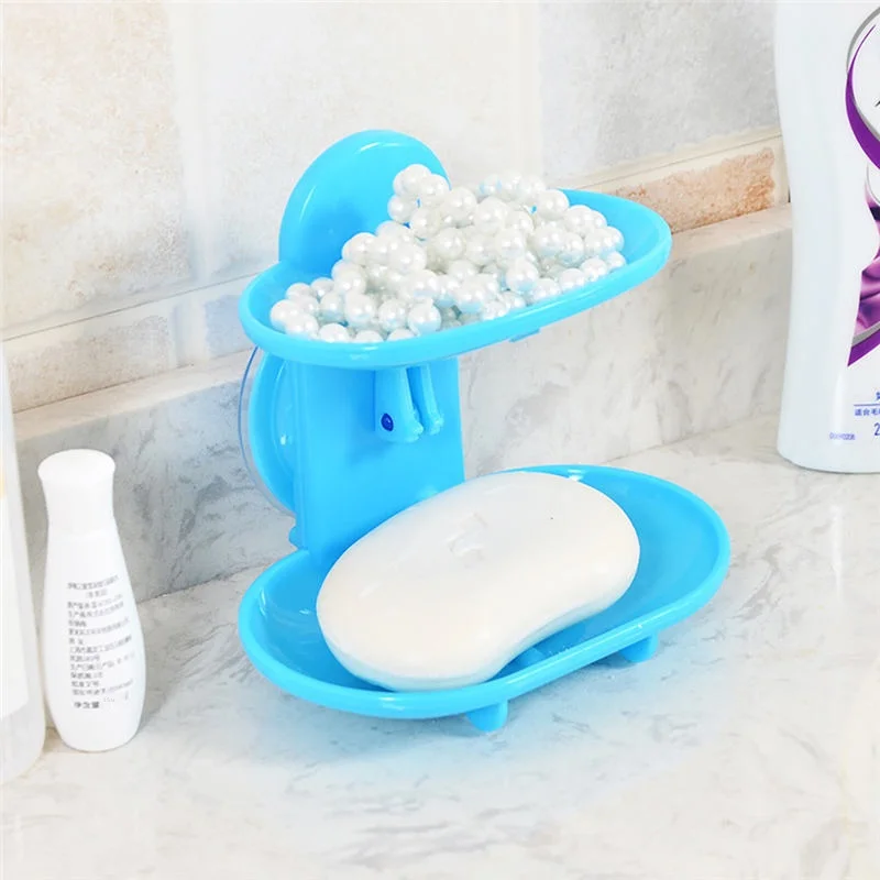 Пластиковая портативная мыльница с настенным всасывающим держателем для кухни ванной комнаты двухслойная коробка для хранения мыла подставка для посуды