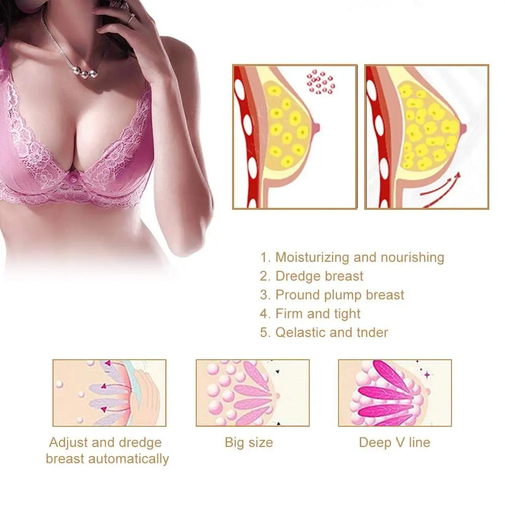 1. Чистое естественное питание и уход: не содержит каких-либо раздражающих ингредиентов, нет быстрой рекламы, это долгосрочный уход. Это эфирное масло содержит необходимые питательные вещества, которые легко впитываются кожей, проникают в слои и достигают нижней части мышц. Это безопасный метод улучшения груди. 2. Более компактно и обильно: Эта эссенция помогает решить плохое развитие вашей груди, а также способствует расслаблению, провисанию, усадке груди Восстановление пухлых. Позвольте коже груди восстановить компактное состояние, более нежное и эластичное, и выглядеть более здоровым. Омолаживайте кожу и получите красивую грудь для вас 3. Увлажняет местную сухую кожу: в этом теле масло содержит натуральные растительные экстракты, которые являются свежей, нежной текстурой и делают кожу более мягкой, увлажненной, полной естественной гладкости, которая также способствует поглощению питательных веществ, И балансирует кондиционер. Только тогда, когда ваша кожа пьет достаточно воды, может обеспечить нормальное поглощение следующих эффектов 4. Корректирующая Очаровательная грудь: крем нужен разумный способ массажа для достижения идеального эффекта поглощения, нанесите соответствующее количество эфирного масла на грудь, Избегайте сосков, используйте обе руки в соответствии с рекомендуемым массажным способом для продвижения местного массажа, массируйте около 10 раз каждый раз, 3-5 раз в неделю, чтобы сохранить кожу нежной и плотной 5. Личная уверенность в жизни увеличивается: каждая женщина хочет чувствовать себя хорошо о своем теле. Идеальная форма тела с подгонкой груди и улучшением формы тела. Вы будете более уверенны и будете иметь лучшую жизнь и возможности. Дайте себе, что повышает уверенность и чувствовать себя хорошо о здоровье и состоянии ваших ценных активов