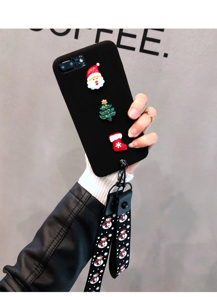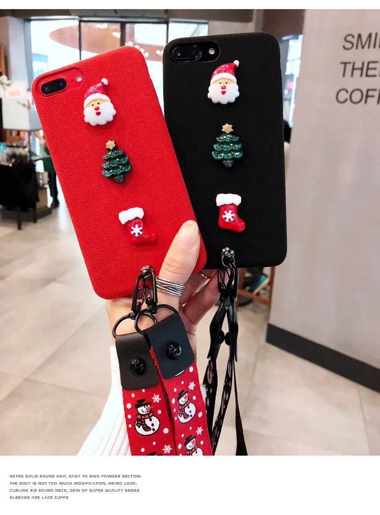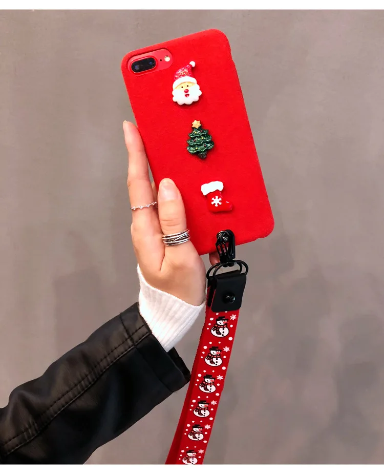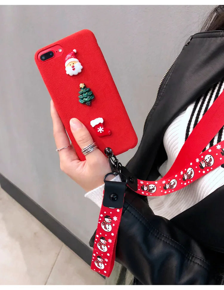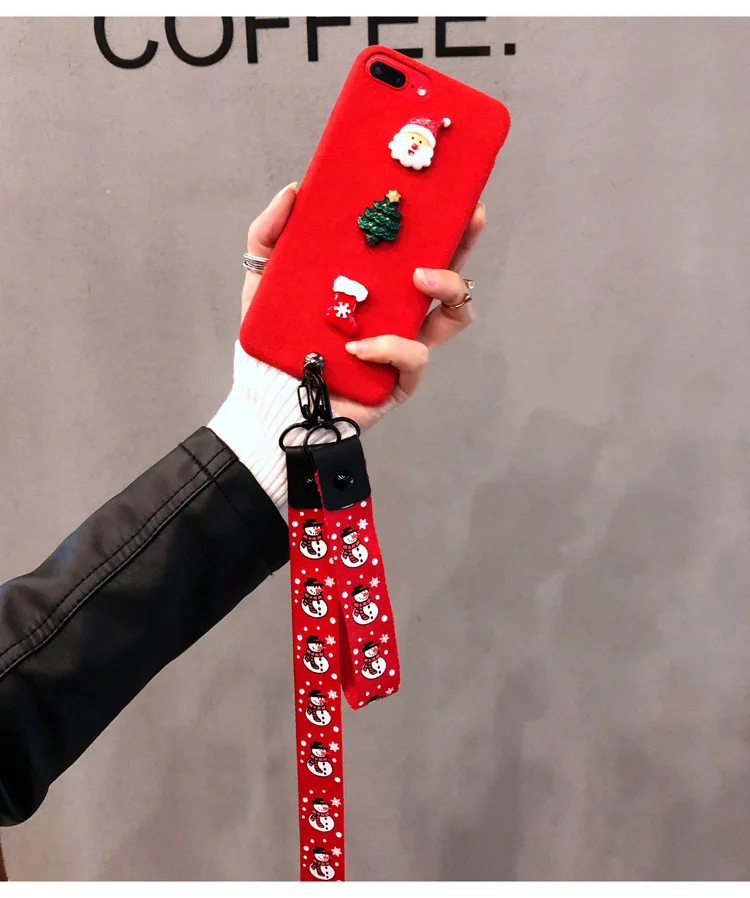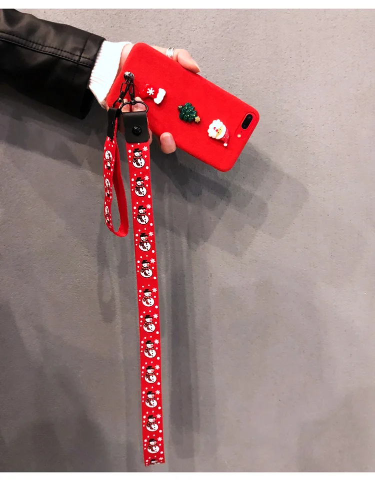 Чехол-держатель для телефона для пары iPhone X фланелетт Рождественский Мягкий ТПУ шейный ремешок для запястья чехол для iPhone 7 8 6 6s plus