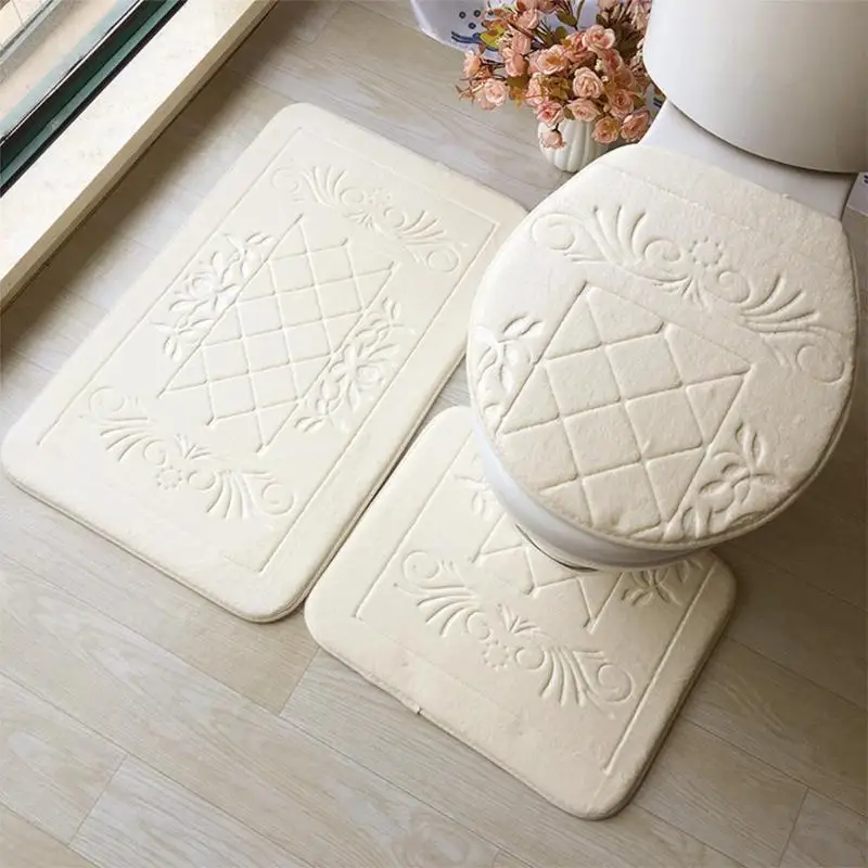 3 шт./компл. Европейский Ванная комната мат тиснения фланелевые тапочки мягкое сиденье для унитазаКрышкаКовер