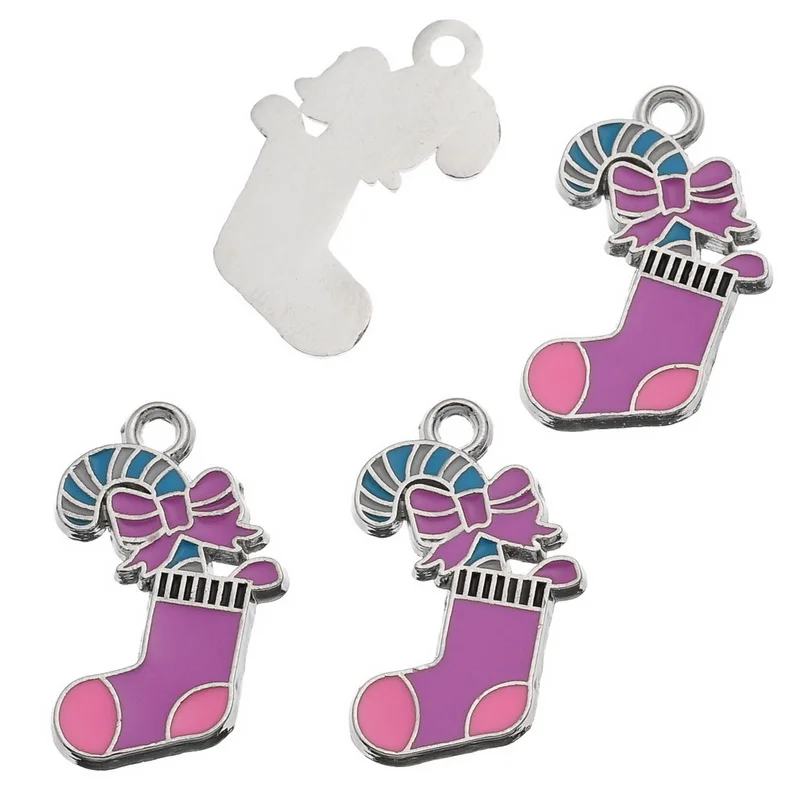 Urijk 10 шт рождественские Очаровательные Подвески эмаль рождественские конфеты трость Серебряный тон чулки блестящая Рождественская елка украшение подарок