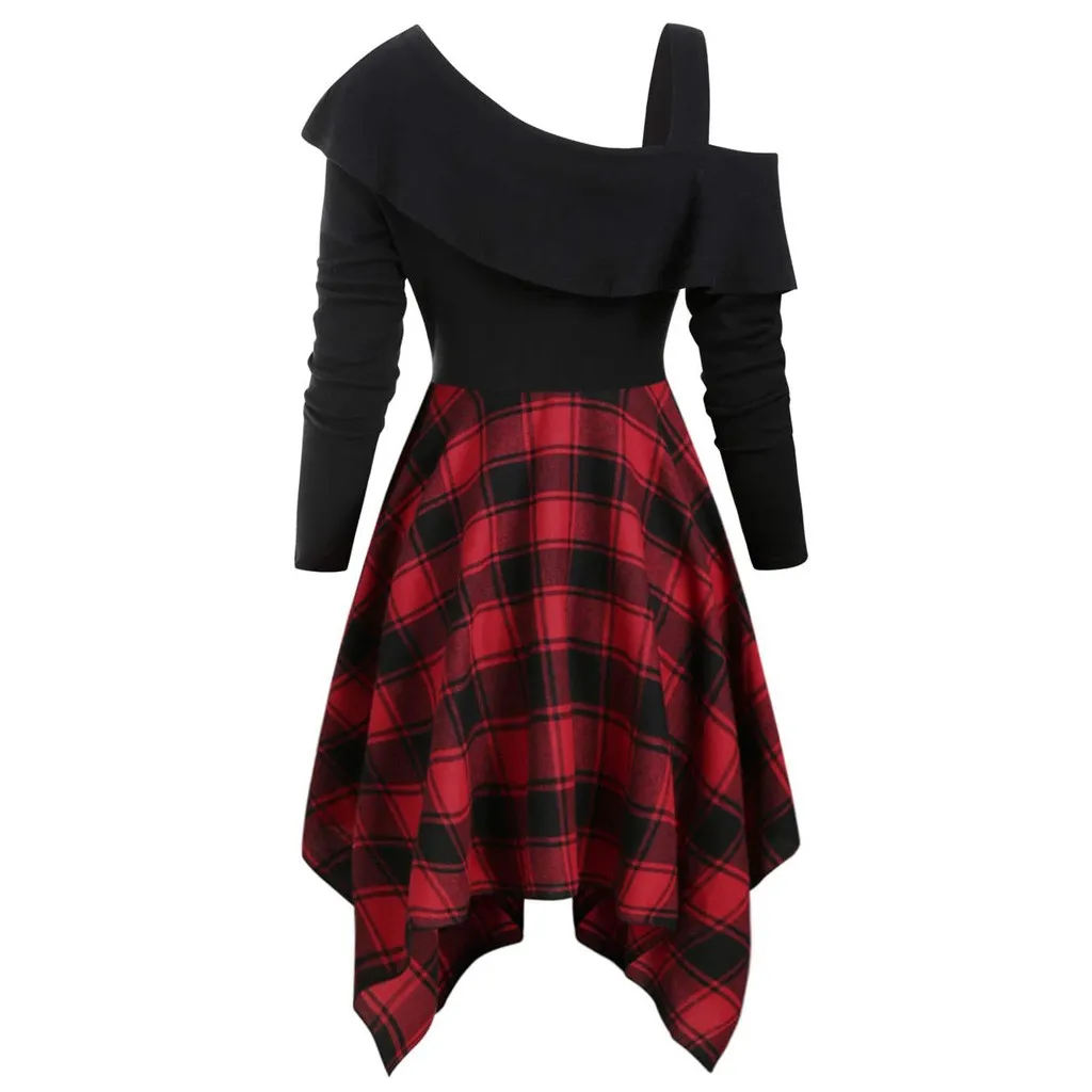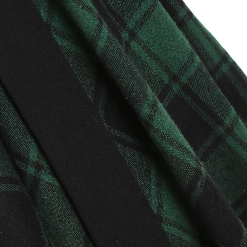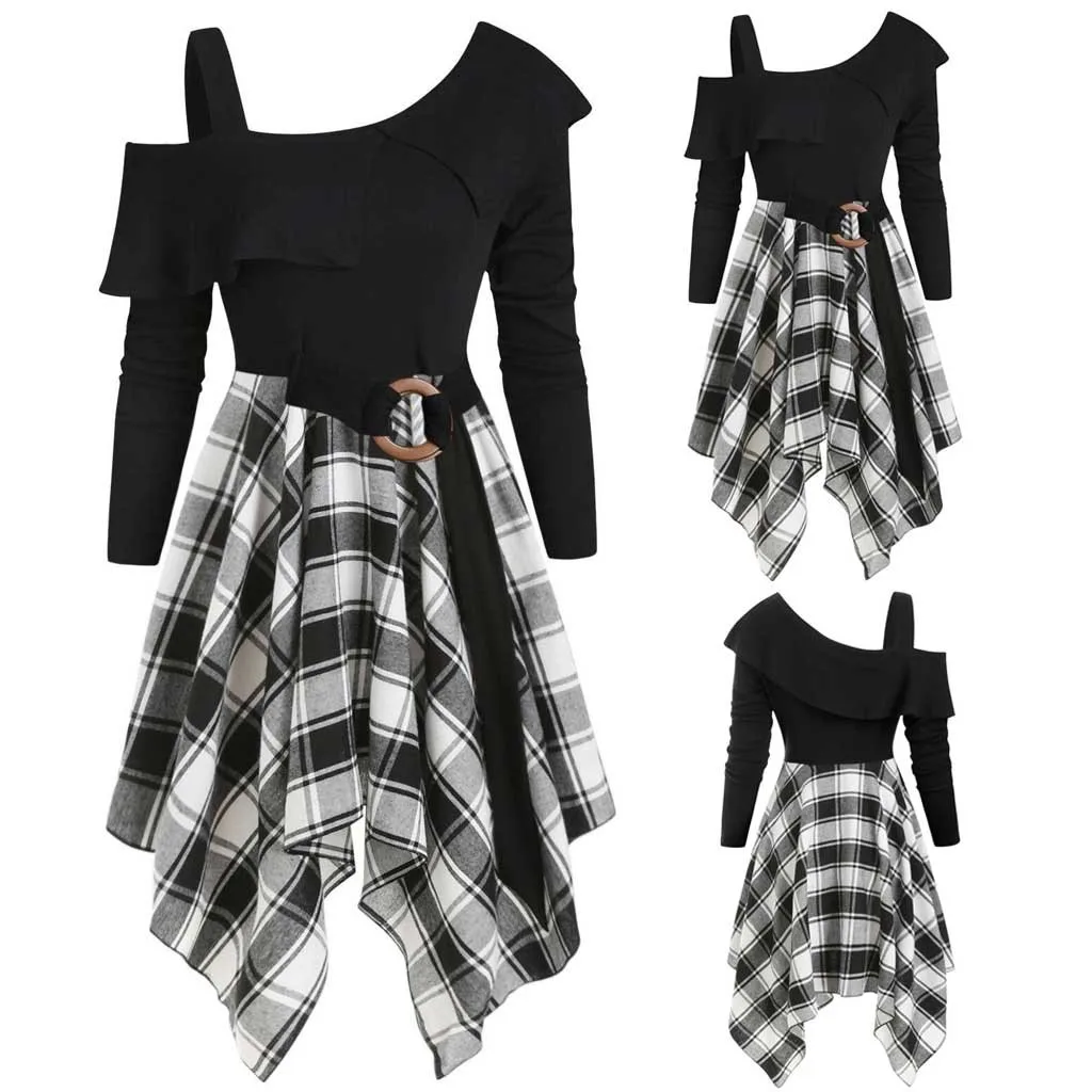 Womne размера плюс клетчатое платье с косой шеей и поясом