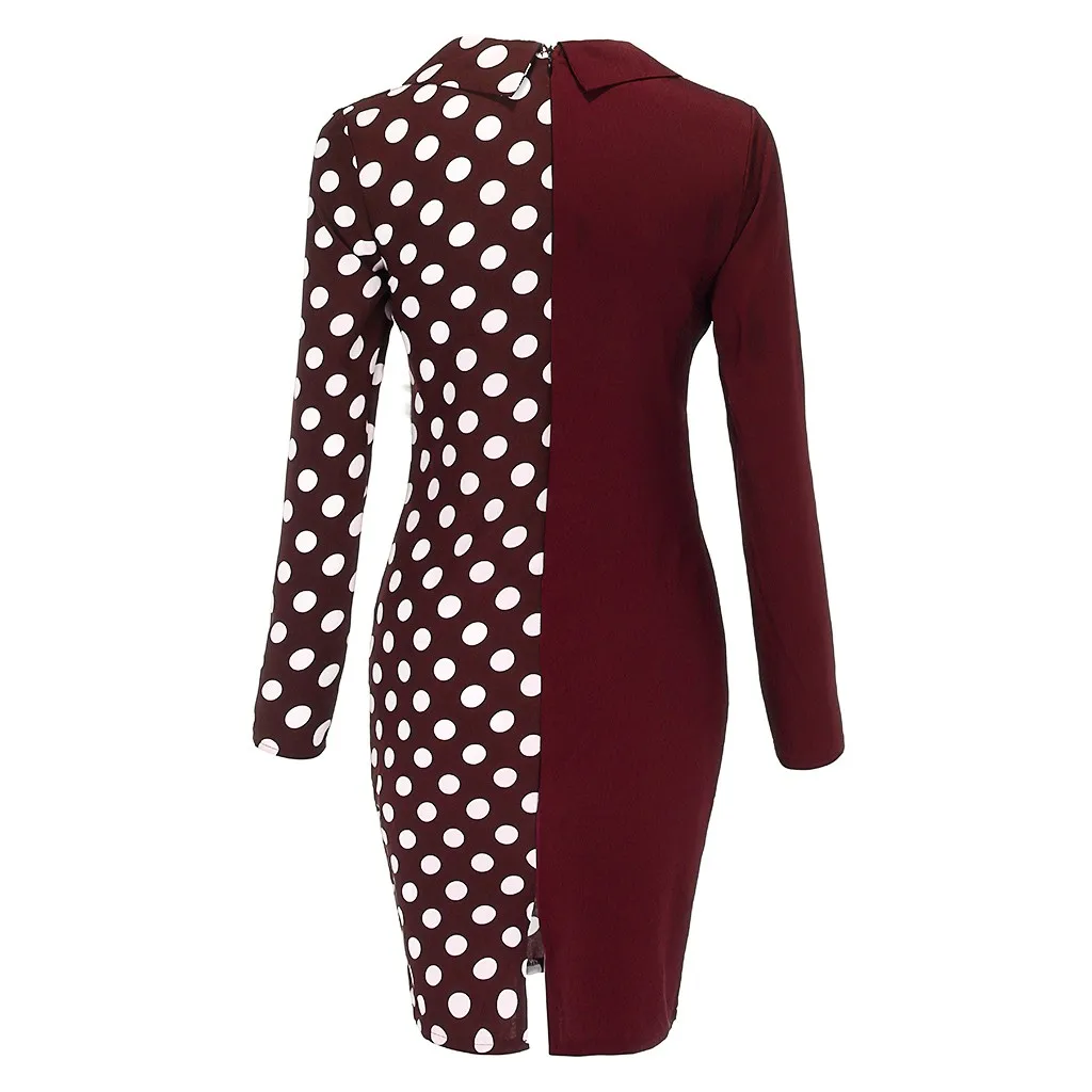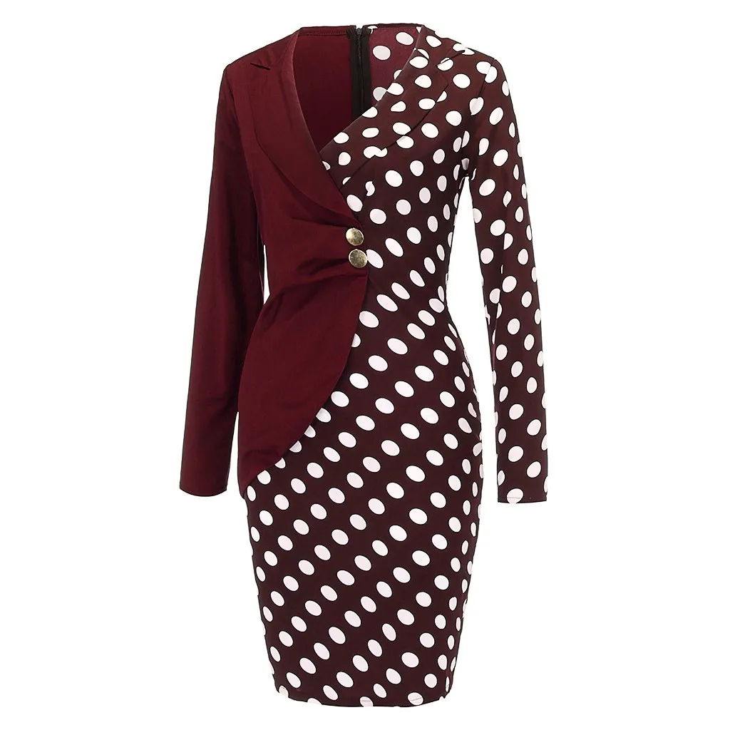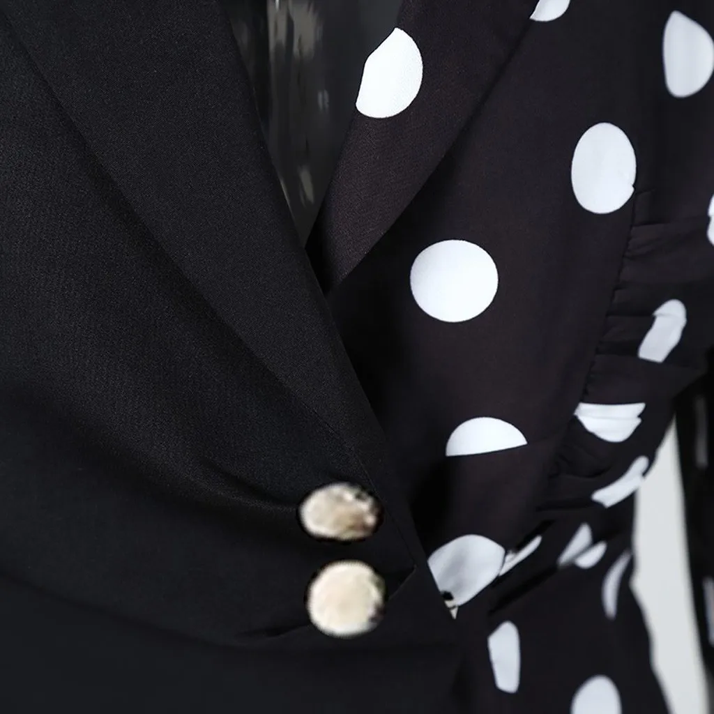 Модный женский облегающий блейзер в горошек с длинными рукавами и пуговицами, платье для работы