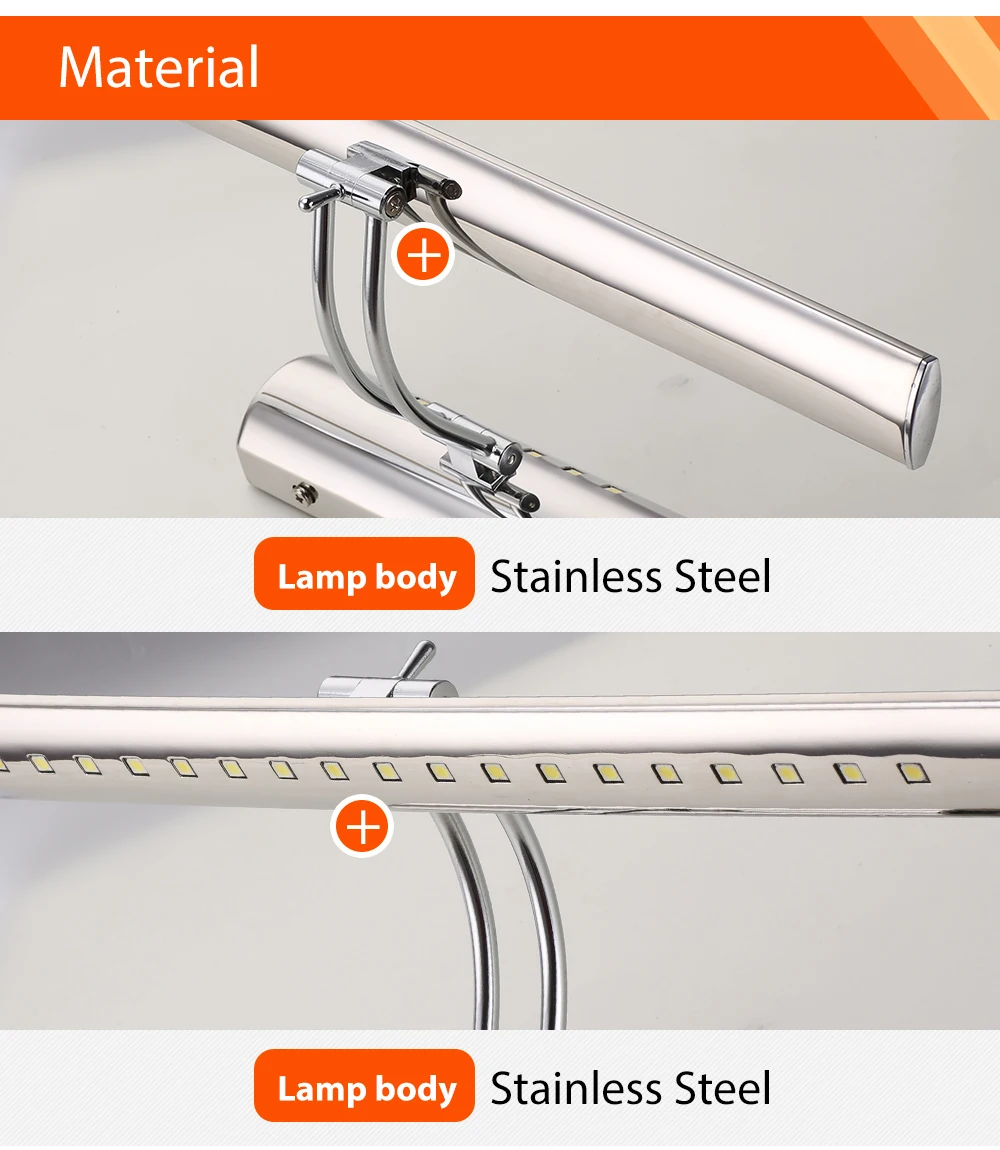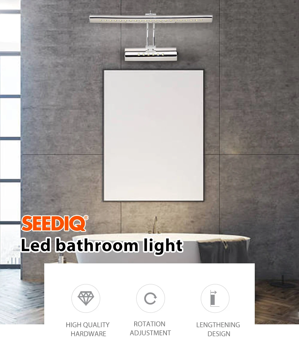Светодиодный зеркальный передний светильник лампа для ванной комнаты 7 Вт 9 Вт AC 90-265 в из нержавеющей стали водонепроницаемый туалетный светильник Настенные светильники с переключателем Бесплатная доставка
