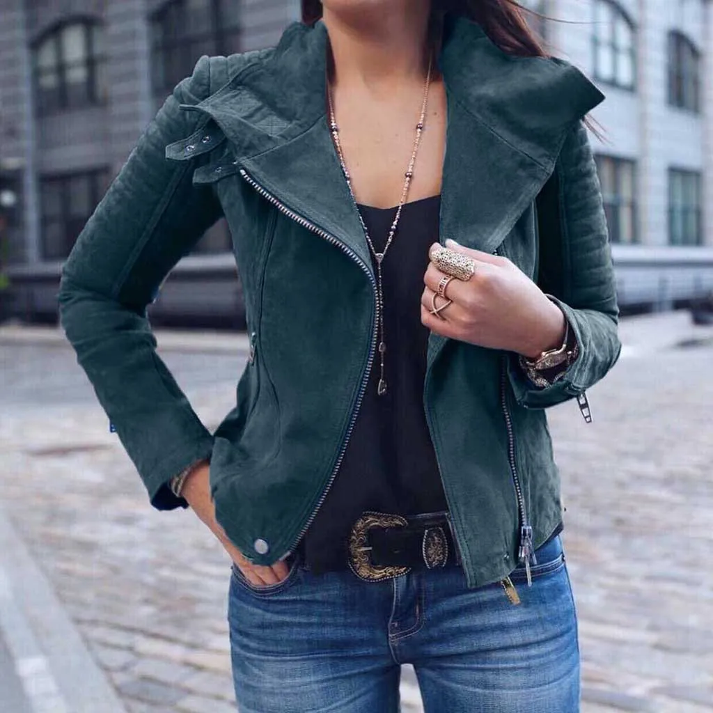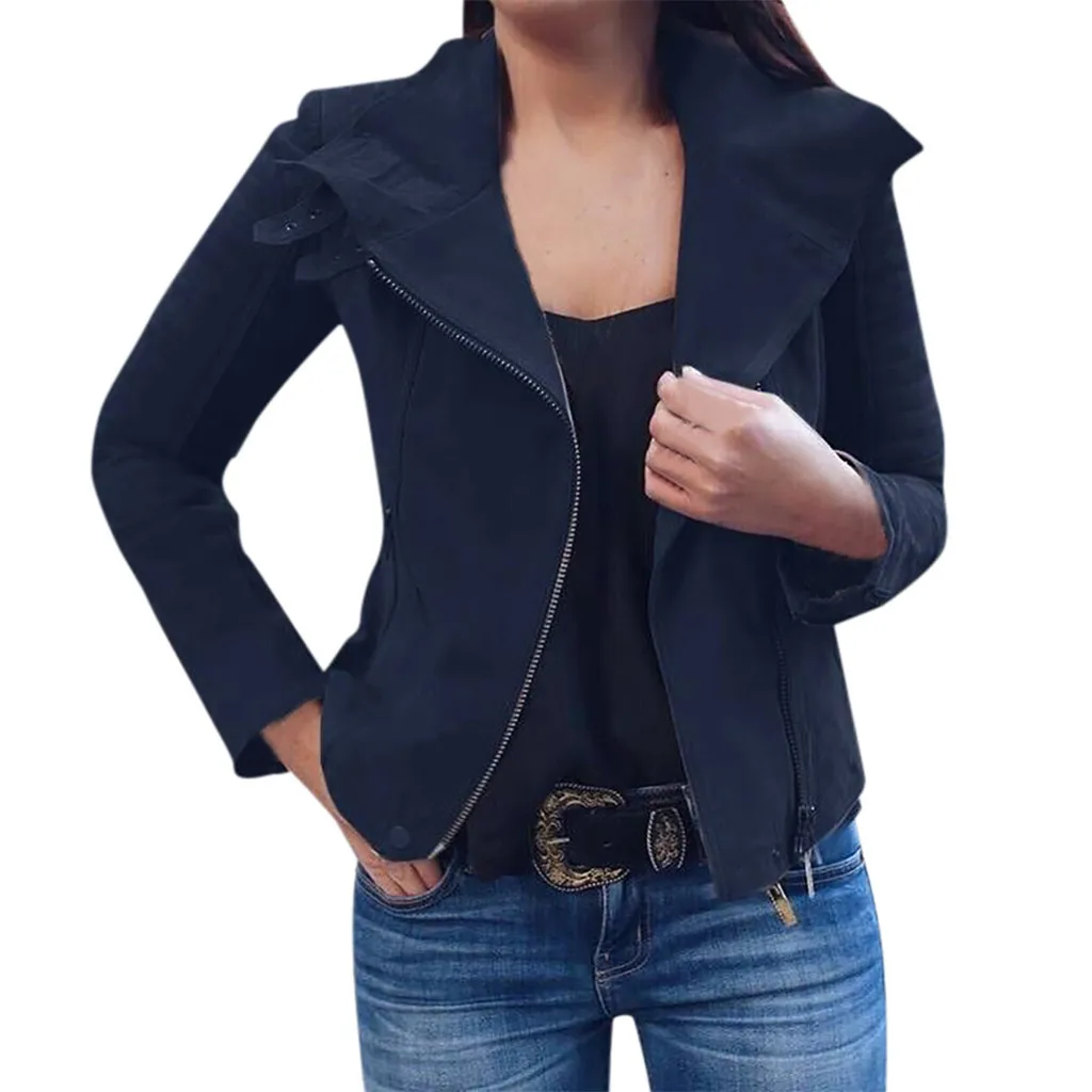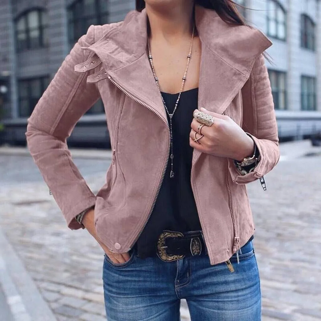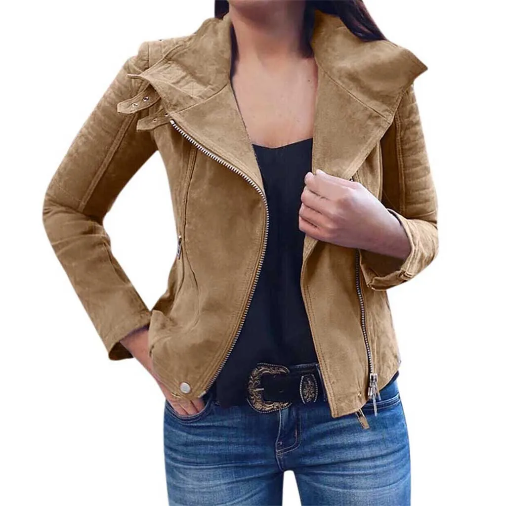 Женская Ретро куртка-бомбер на молнии с заклепками, повседневная верхняя одежда