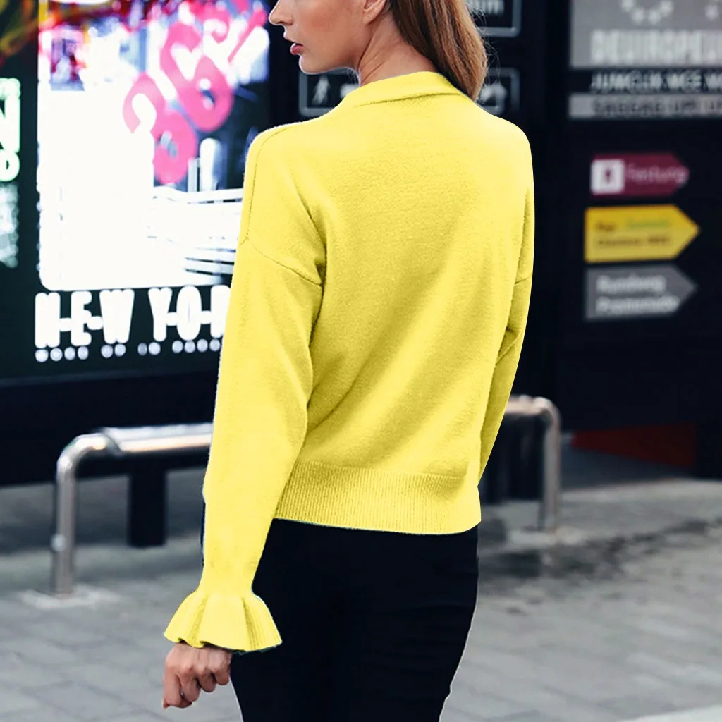 Женская Повседневная однотонная куртка-кардиган на пуговицах с рукавами-лепестками
