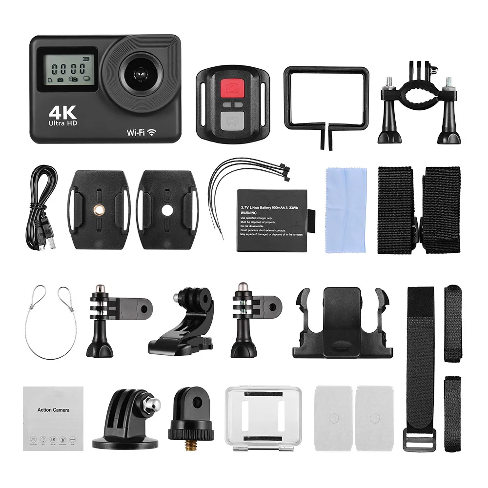 В том числе несколько монтажных аксессуаров, которые облегчают вам крепление экшн-камеры легко для шлема, велосипеда, селфи-палки, скейтборда и т. Д.