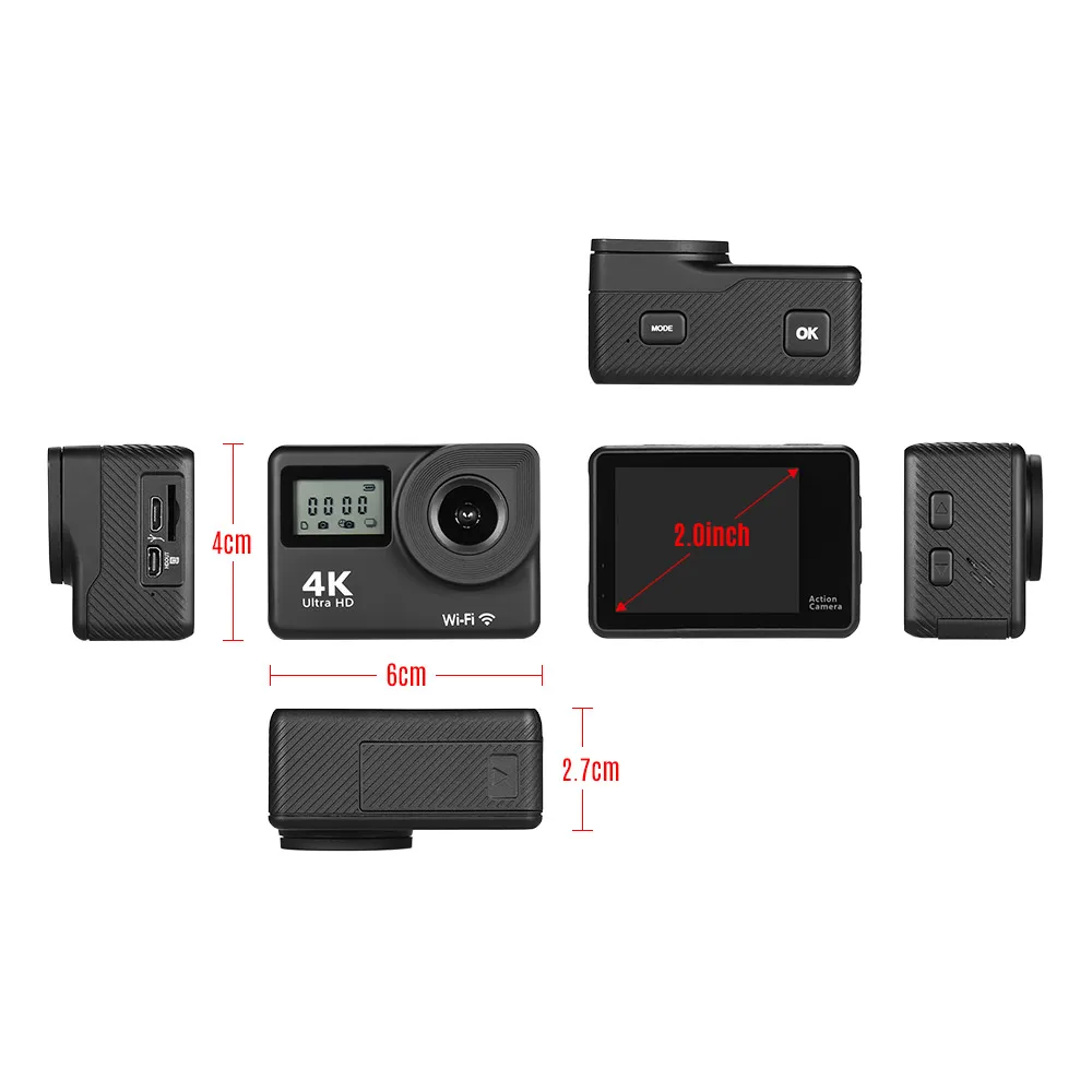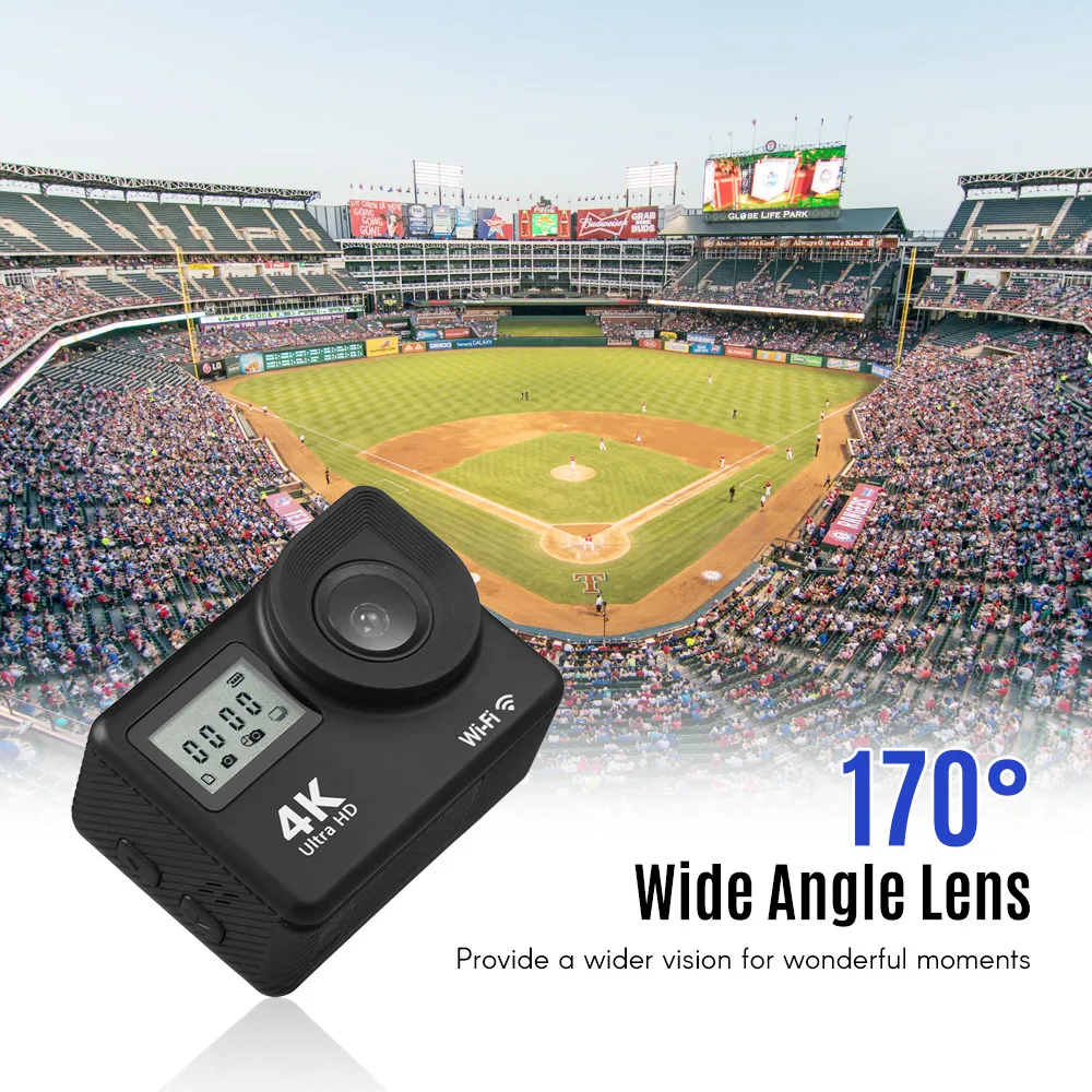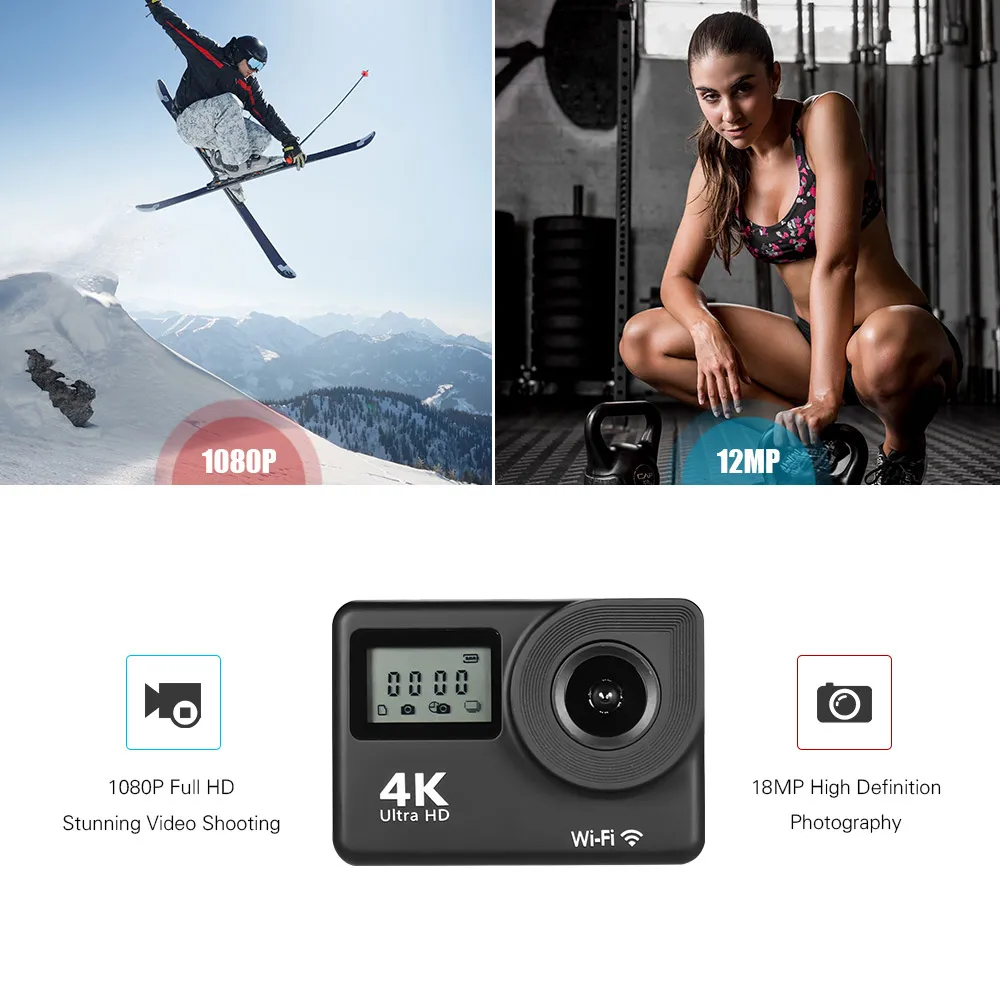 4 K Ultra HD WiFi Спортивная Экшн-камера 18MP 170 ° широкоугольный 2,0 дюймовый ЖК-сенсорный экран 30 метров водонепроницаемый с 2 шт литий-ионными аккумуляторами