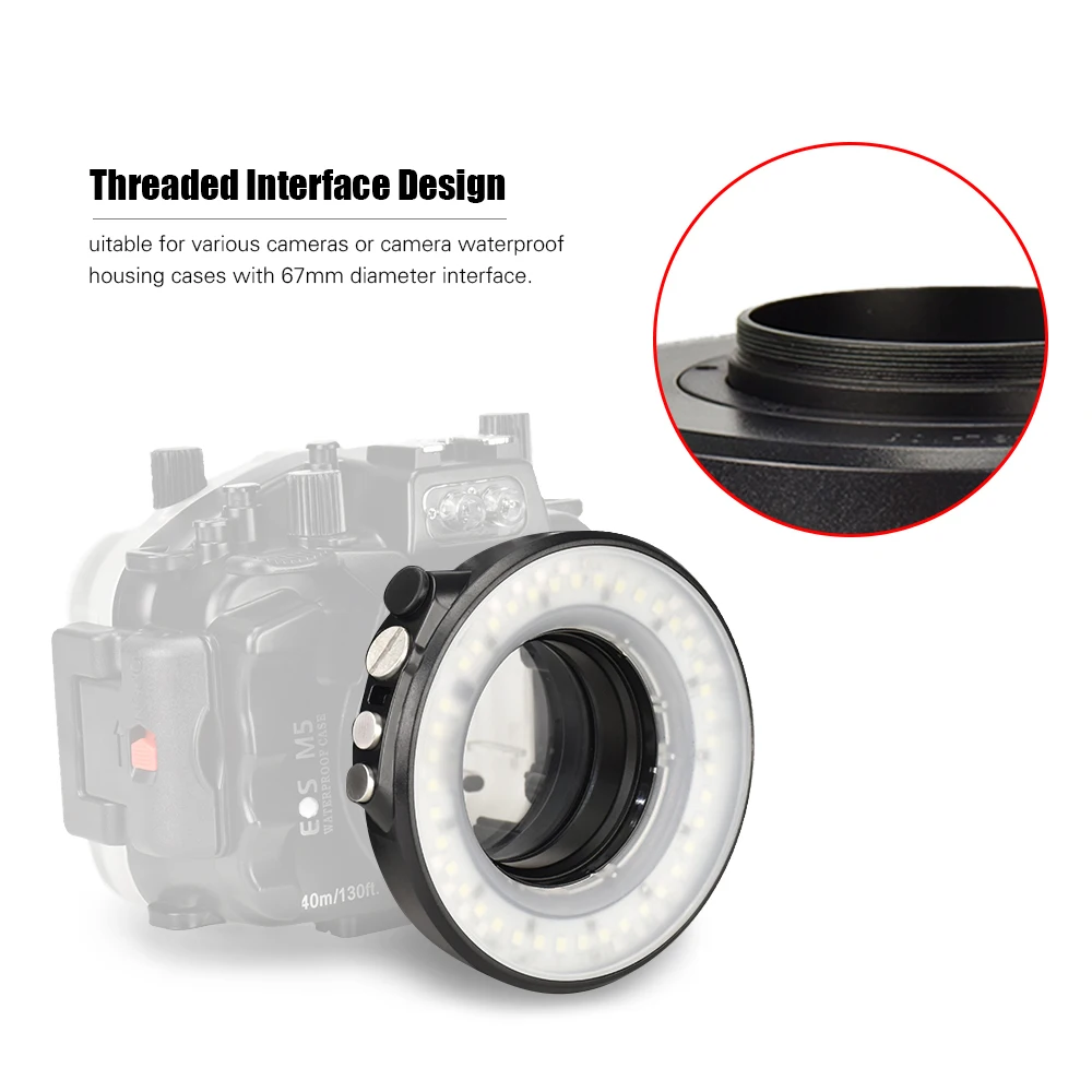 Конструкция с резьбовым интерфейсом, подходит для различных камер или водонепроницаемых корпусов с интерфейсом диаметром 67 мм.