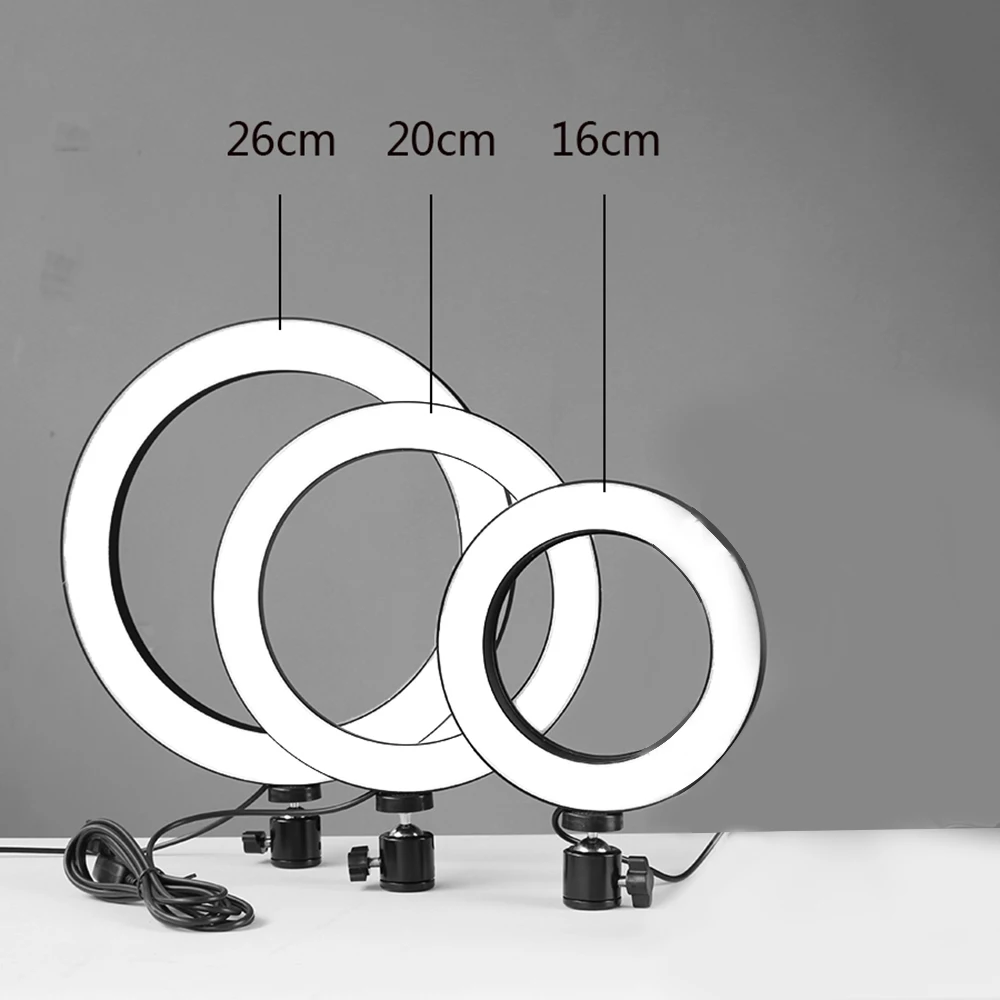 Светодиодный светильник DC5V 7 Вт, круглая лампа для селфи с телескопическим штативом, работающим от USB, с 10 уровнями регулируемой яркости, регулируемой яркостью/изменением цветовой температуры/поворотным углом освещения 360 ° для съемки в реальном времени