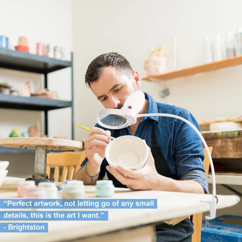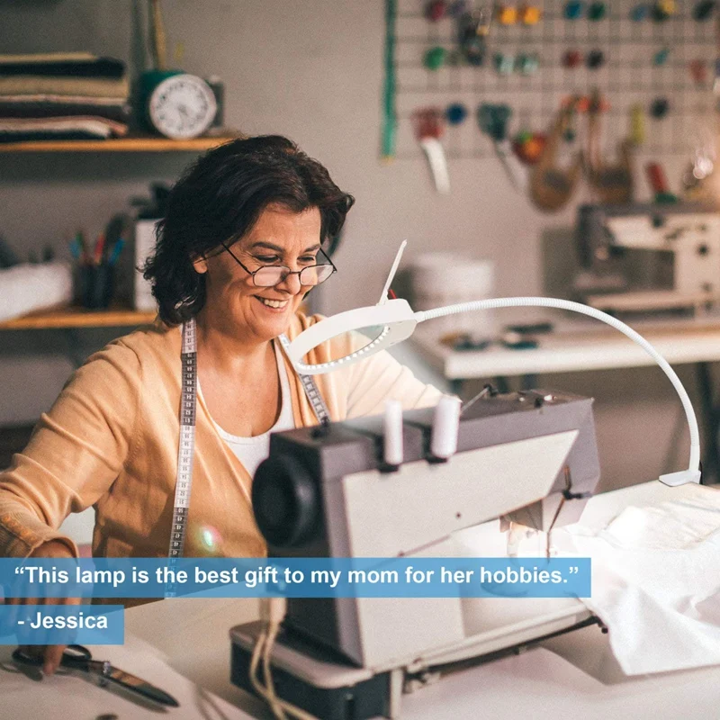 [Одна лампа для решения всех проблем] вы можете использовать эту лампу в различных сценариях и использовании. До тех пор, пока ваш рабочий стол имеет ровную плоскую кромку, зажим можно легко установить. Широко используется на столе, столе, стуле, верстаке или полке. Старшеклассники использовали его для чтения газет, таблеток, шитья, вязания, рукоделия, завязывания летающих. Эстетики использовали его для наращивания ресниц, лица, маникюра, тату. Любитель использовал его для ювелирных изделий, живописи, вышивки, бисероплетения, резьбы, пазла и т. д.