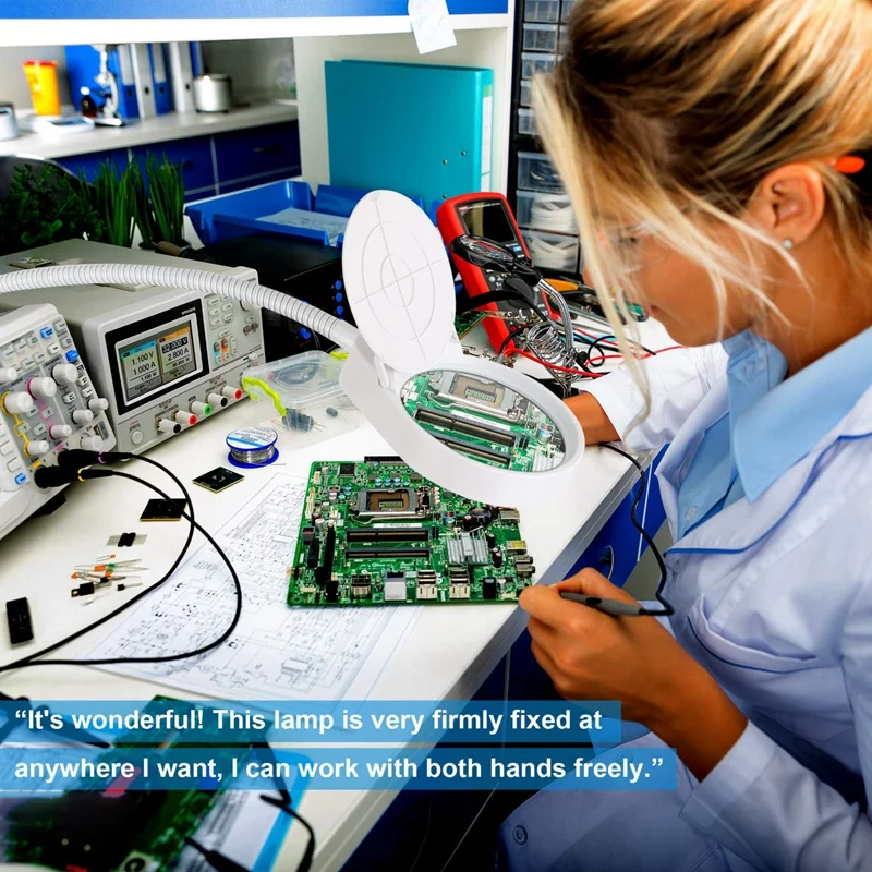 [Полезная Зажимная лампа, освободите обе руки] забудьте о ручном или головном Лупе! Увеличительная лампа предназначена для пользователей, которые читают или работают удобно, удобно. Лампа имеет 23-дюймовую гибкую металлическую гусиную шею, длиннее, чем у других моделей около 9 дюймов, сохраняет хороший баланс жесткой и регулируемой, не падая и не тряся, таким образом, вы можете расположить объектив там, где он нужен, свободные руки для рукоделия или хобби, рукоделия или других профессиональных задач, таких как ремонт, Пайка, эстетика, красота.