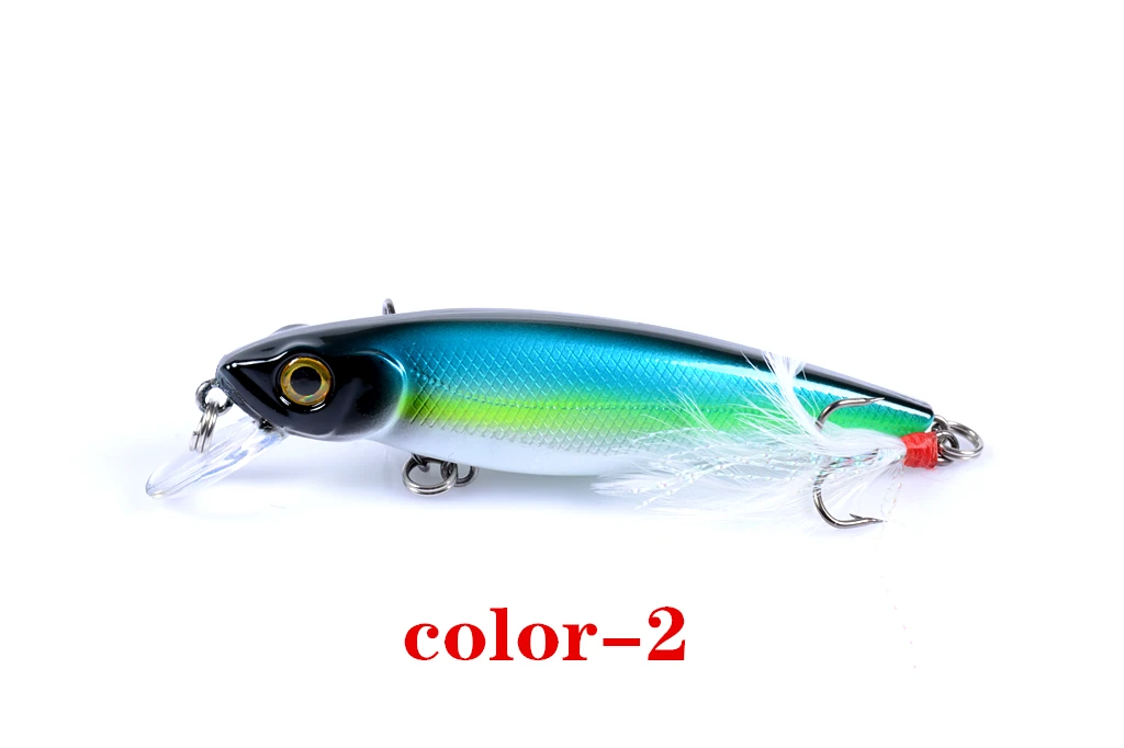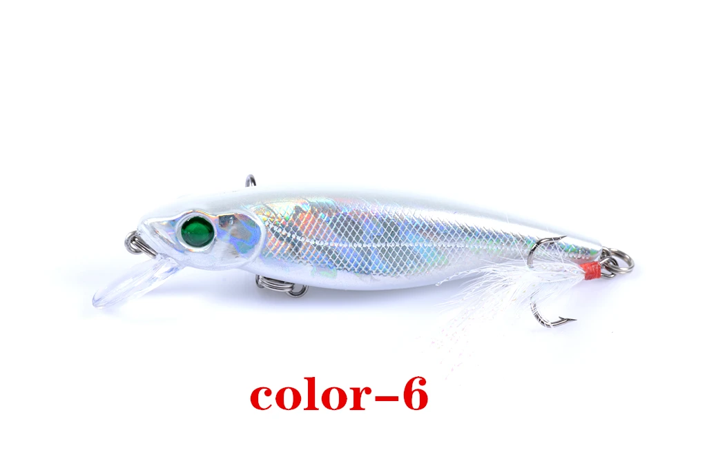 Цвет: 6 Цвет Длина: 8,6 см Вес: 9,1 г Глубина погружения: погружного типа 1,2 m-2,7 m Материал: АБС-пластик Рыболовный крючок Модель: featherhooks 6 # * 2 Глаза: 3D глаза Вы получаете то, за что платите.