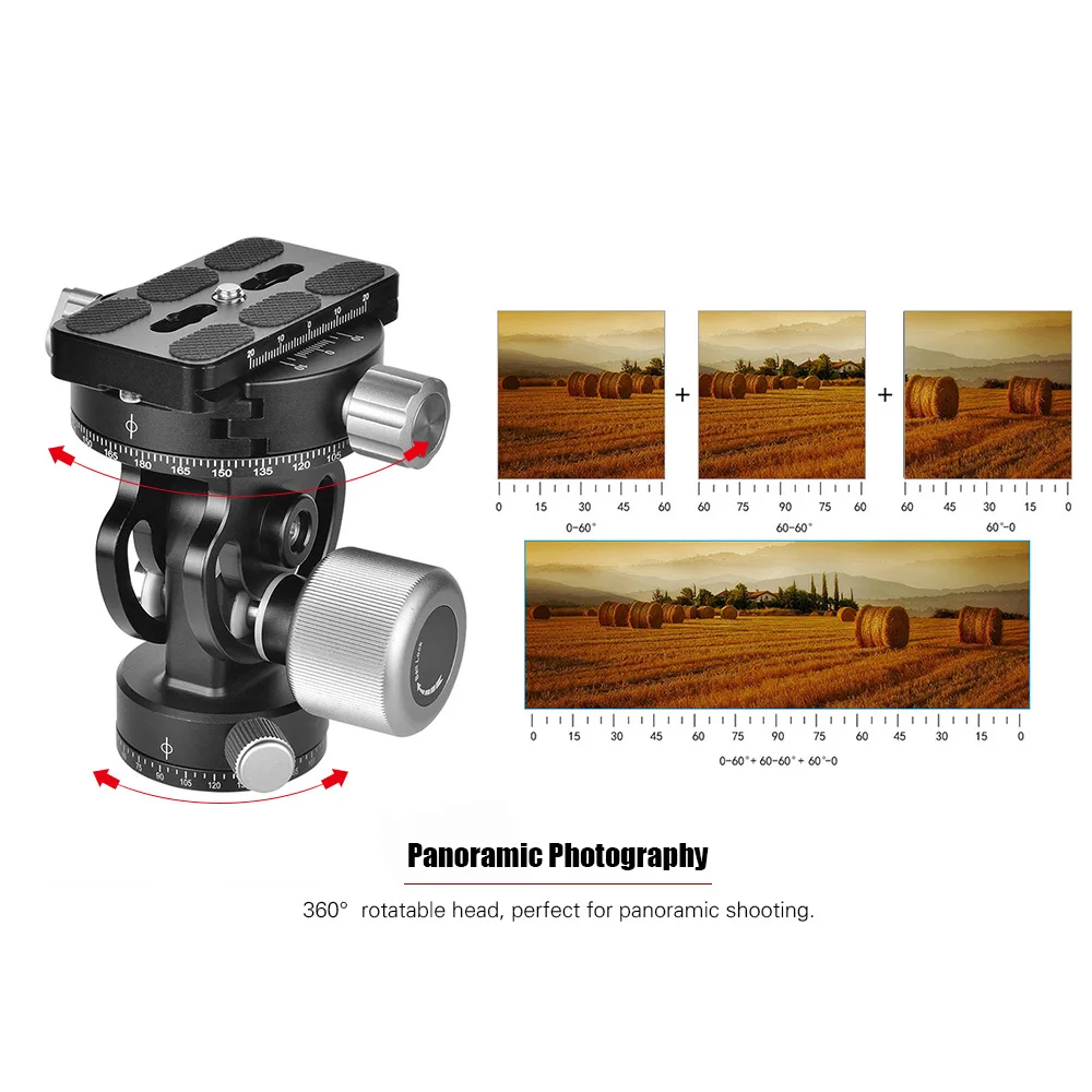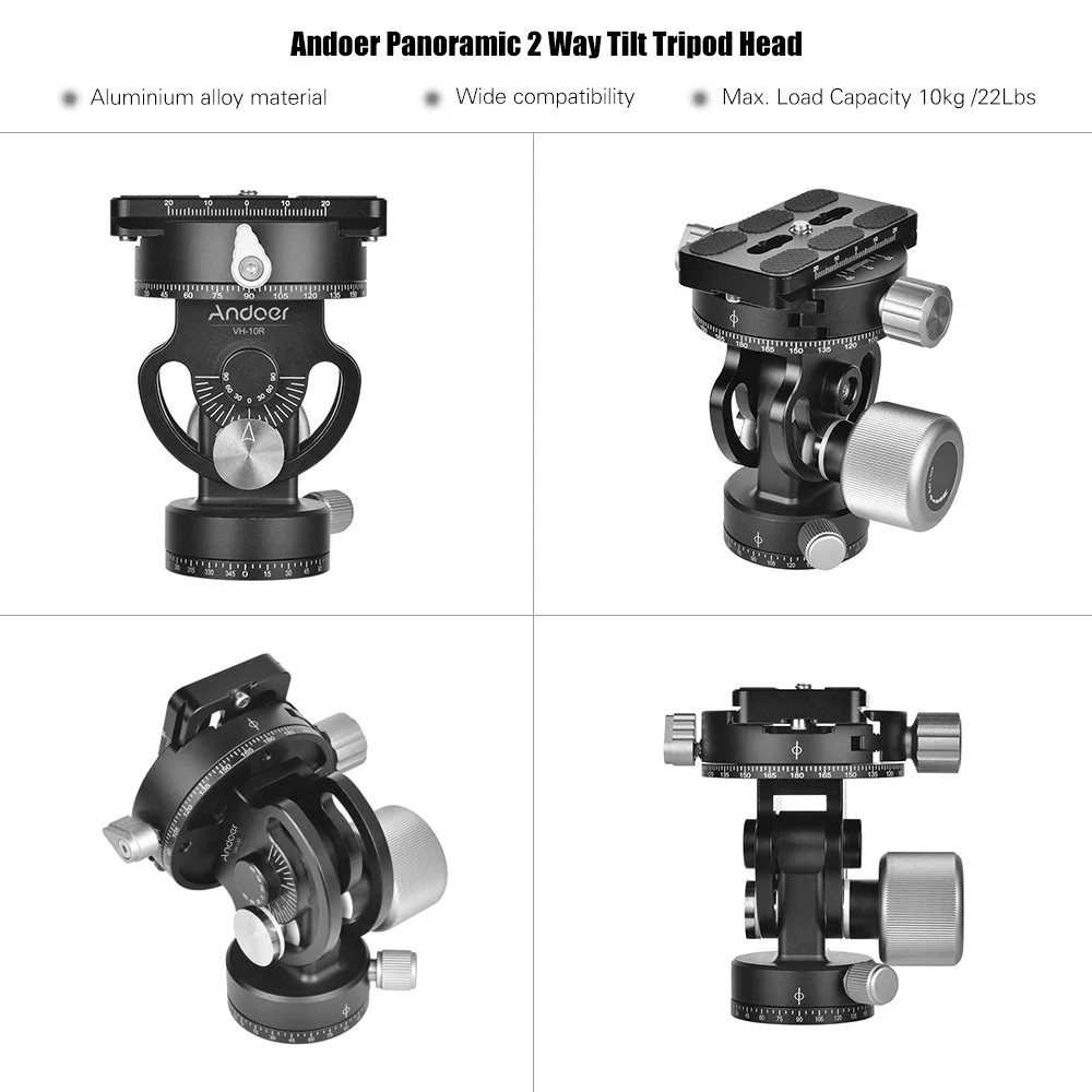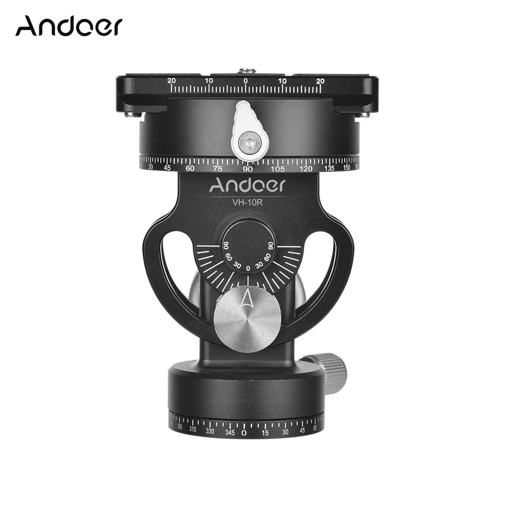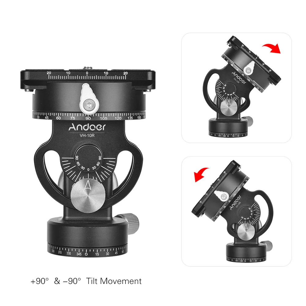 Andoer VH-10R алюминиевый сплав Штативная головка-это отличный помощник для панорамной съемки, а также для наблюдения за птицами. Поддерживает вращение на 360 °, наклон +/-90 °. Процесс очень гладкая.