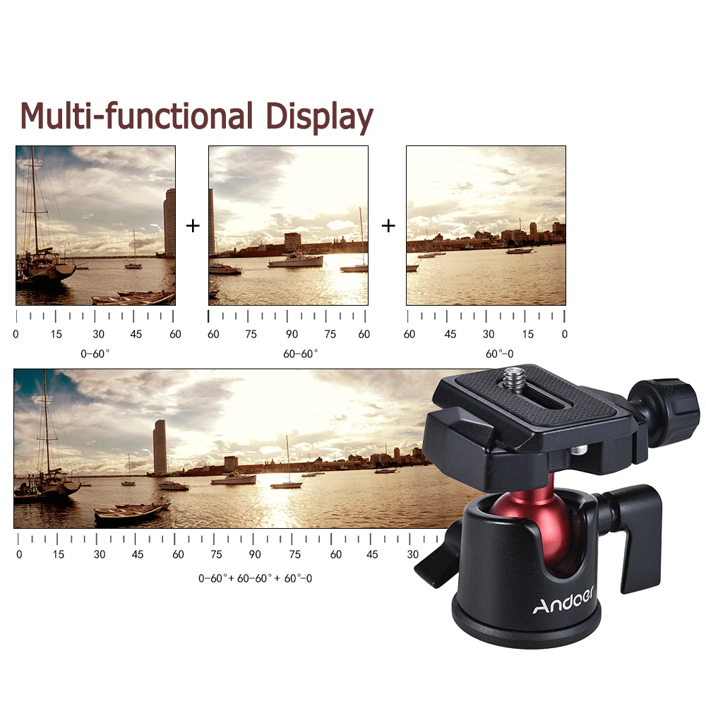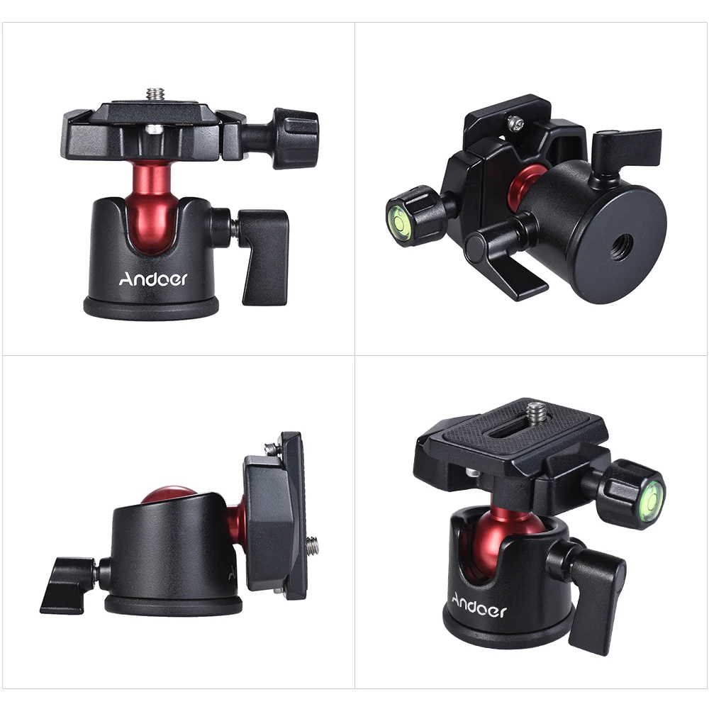 Andoer мини шаровая Головка из алюминиевого сплава для настольного штатива. 25 мм сферическая поддержка вертикальной и горизонтальной съемки. 1/4 "винт БЫСТРОРАЗЪЕМНАЯ пластина для быстрой установки камеры. Нижний диаметр 4 см/1,6 ", нижняя нить 3/8".