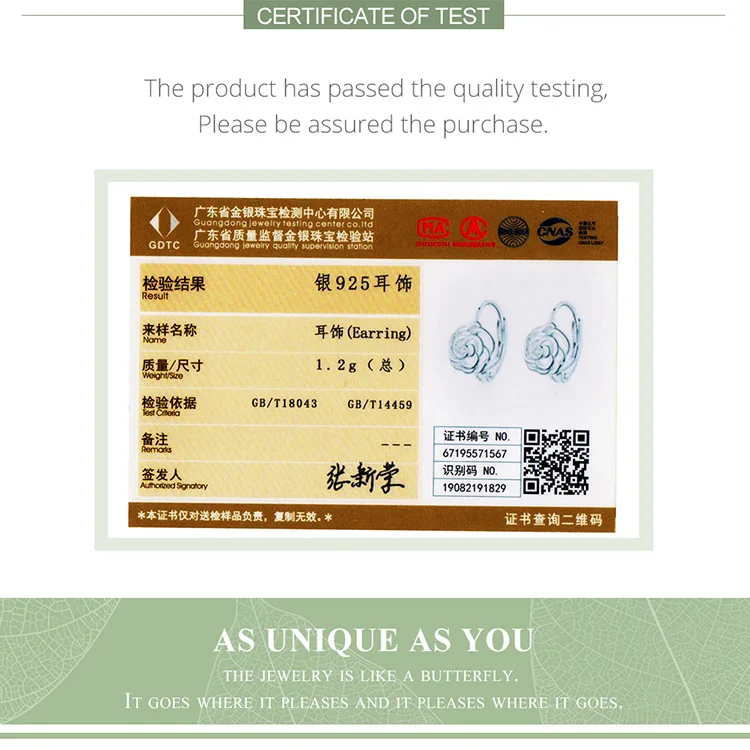 Items Name: Original Design Authentic 100% 925 Sterling Silver Earrings For Women