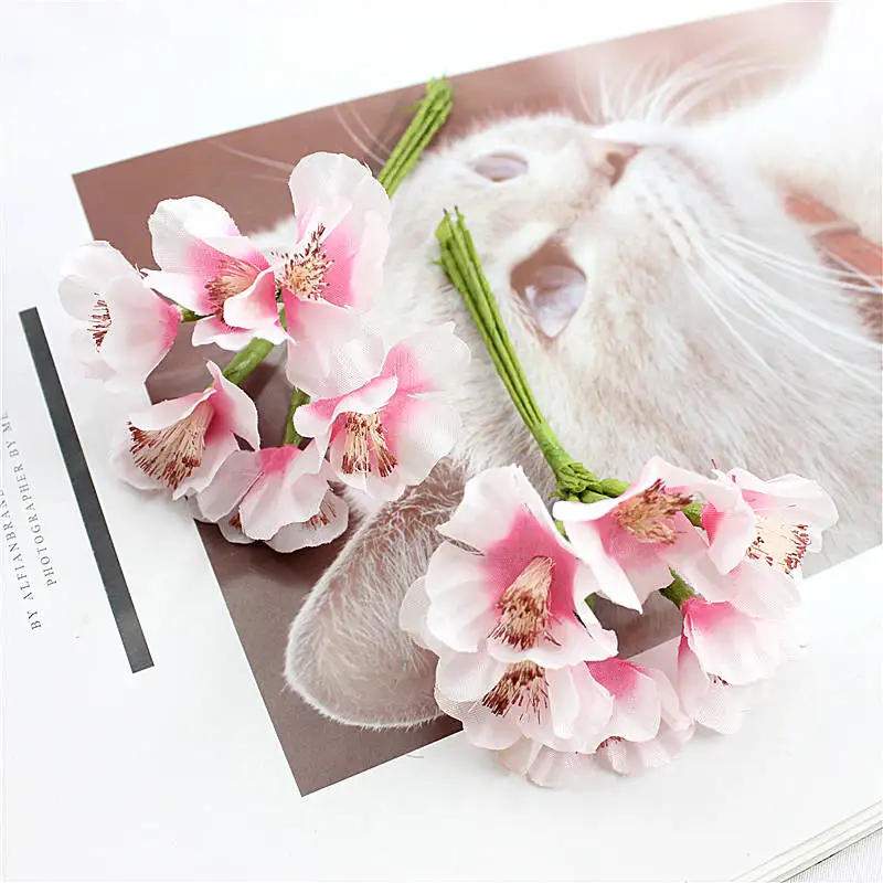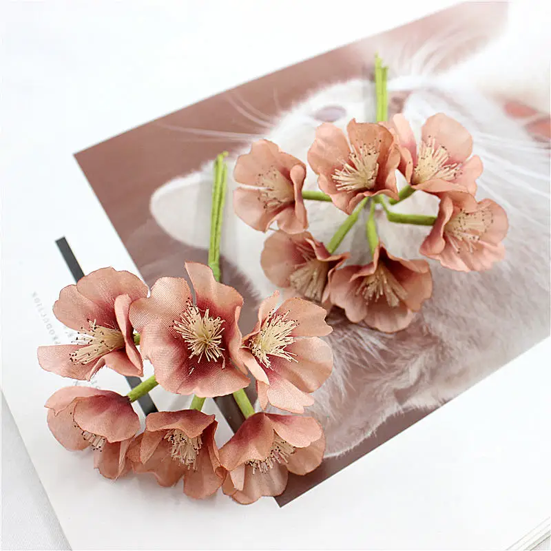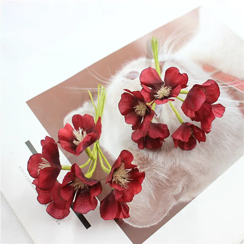 60 шт. искусственный сливовый ремень с принтом мини Шелковый цветок свадебное украшение Корона скрапбук Сделай Сам поддельный цветок