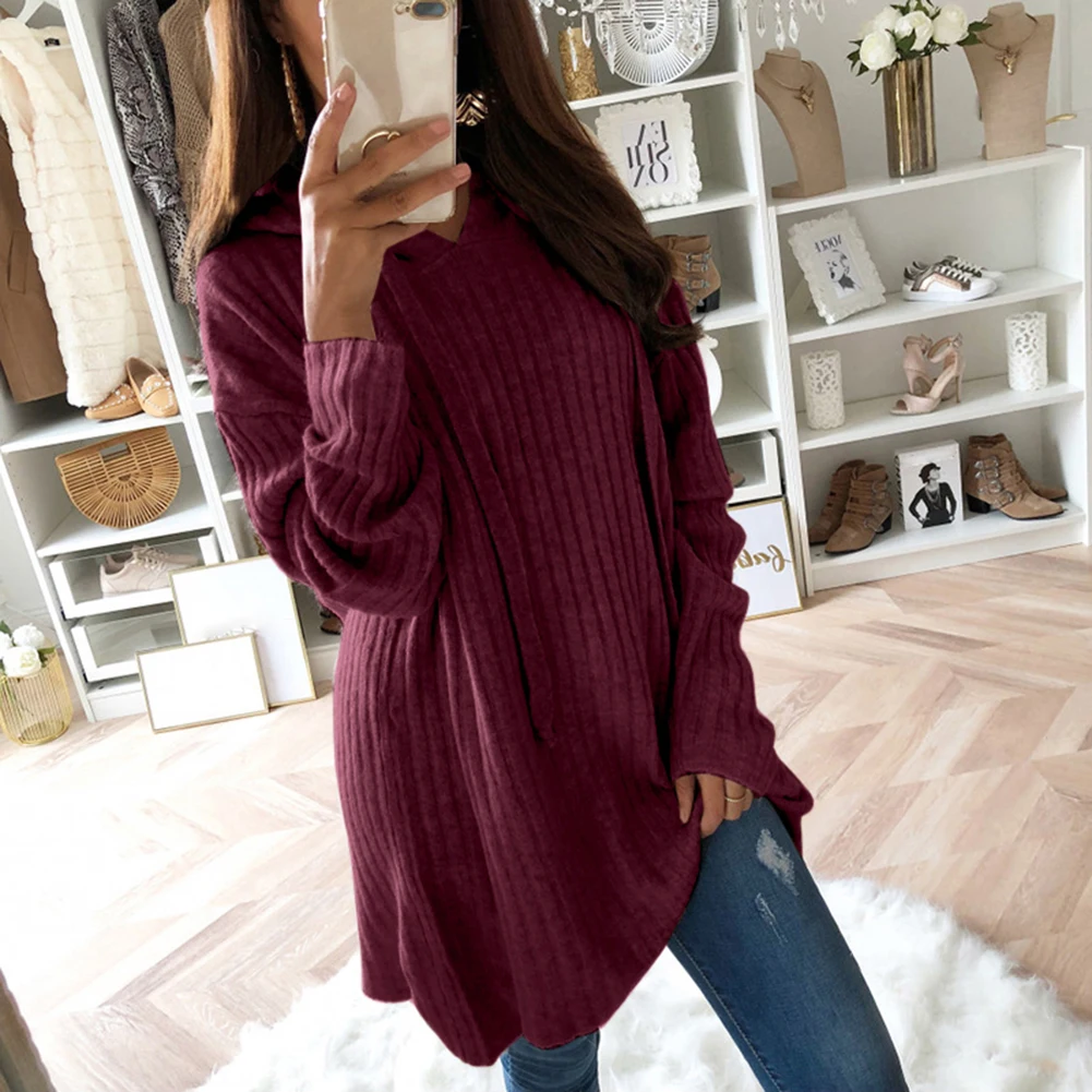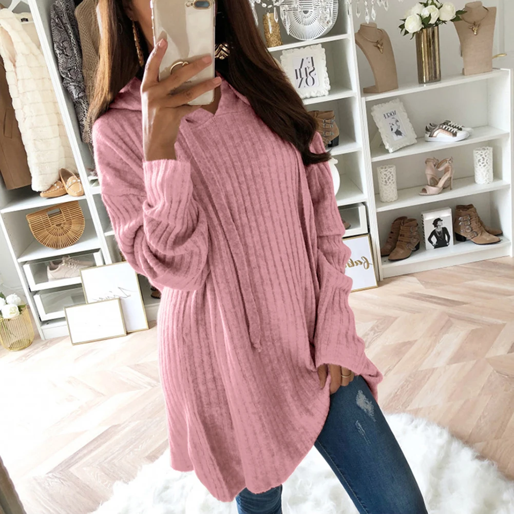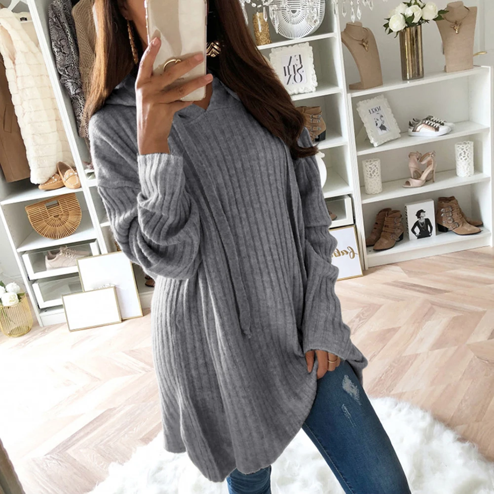 Женский Повседневный Однотонный свитер размера плюс, Свободный пуловер с капюшоном, туника