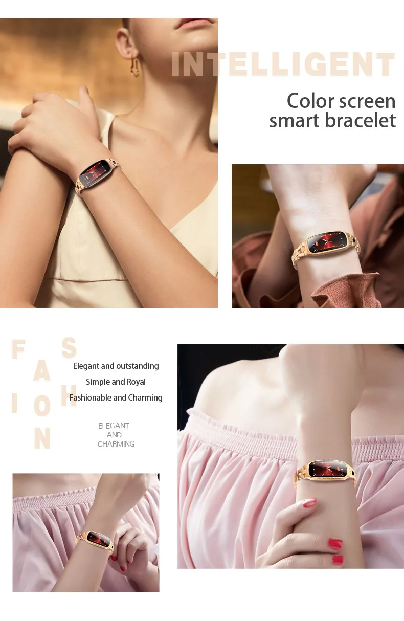 Женский умный браслет с квадратным экраном (цветной экран высокой четкости 0,96 дюймов IPS).