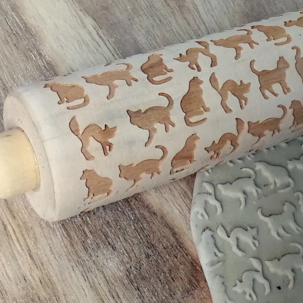35 см Длина Деревянный котенок печать резьба рельефная Скалка креативный узор кошка Печенье Тесто палочки товары для дома, кухни