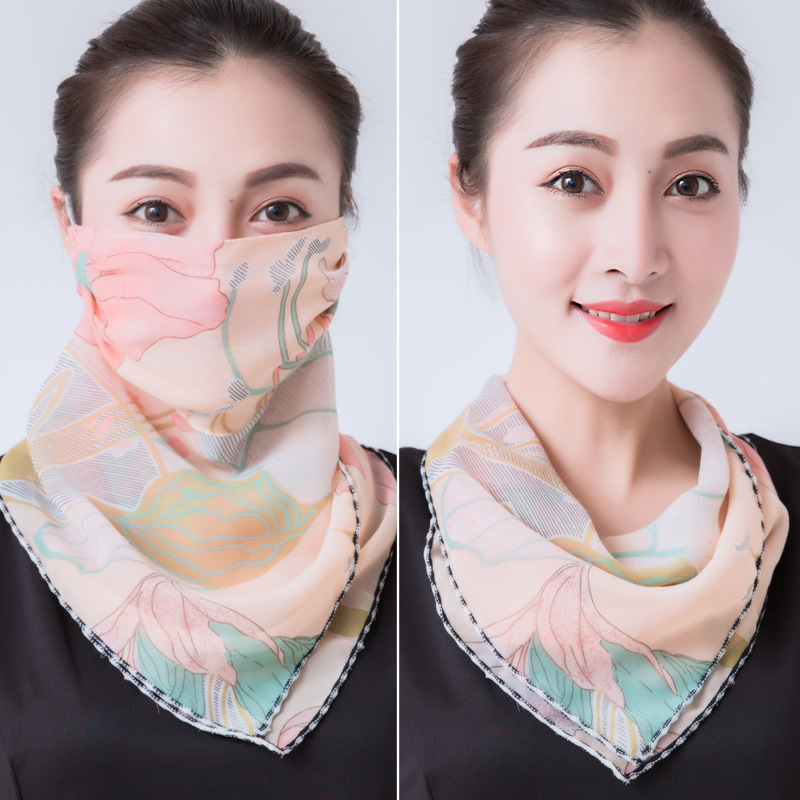 Женская шифоновая маска от солнца Qearlstar, дышащая Тонкая шелковая маска с цветочным принтом для езды на велосипеде и вождения, YT27