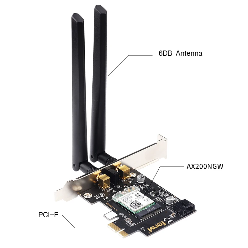 1 х Fenvi AX200 Беспроводной адаптер PCI-E 1 x Bluetooth кабель 1 x w/низкий профиль кронштейн 1 x Установка руководство 2 x антенна с высоким коэффициентом усиления или 1x магнитный петлевая антенна