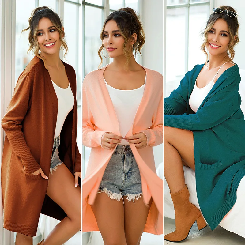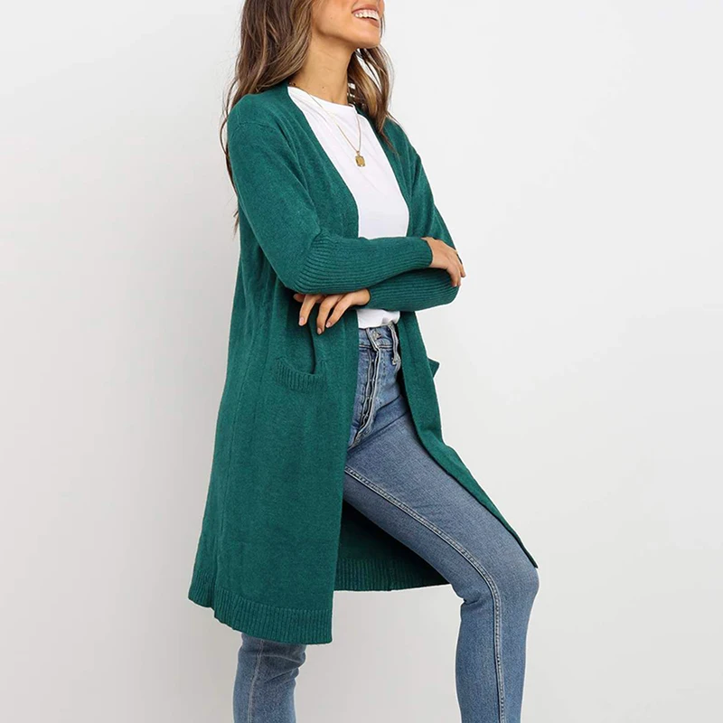 Повседневный Кардиган на новый сезон. Он имеет сплошной цвет, Открытый спереди и боковые карманы, плечи и длинные рукава. Сочетайте его с джинсами или леггинсами, чтобы завершить стиль ретро.