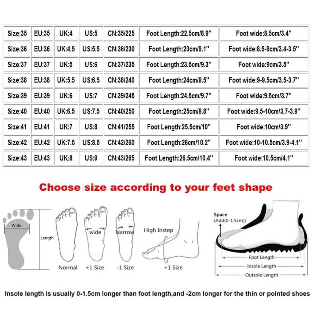 Полезные советы:Различные стили обуви, пожалуйста, выберите размер в соответствии с вашим типом стопы.