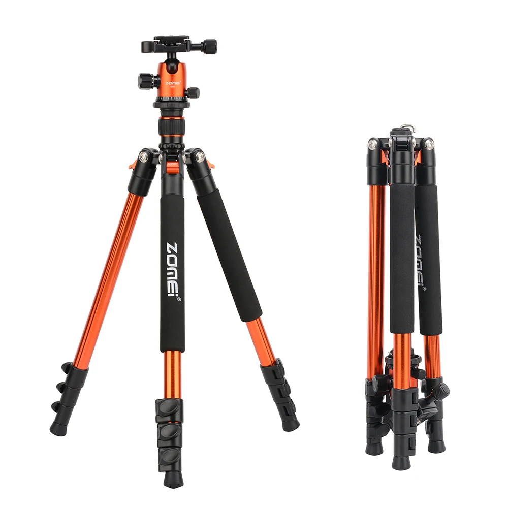 Штатив ZOMEI Q555 из алюминиевого сплава-хороший помощник для съемки на улице. Макс. Высота 63 ", вес только 3.1Lbs, складная конструкция, флип-на замок, 3 положения угла, Реверсивный центральная колонка, угол регулируемый шаровая Головка, как тип БЫСТРОРАЗЪЕМНАЯ пластина... Все это делает его хорошим выбором.