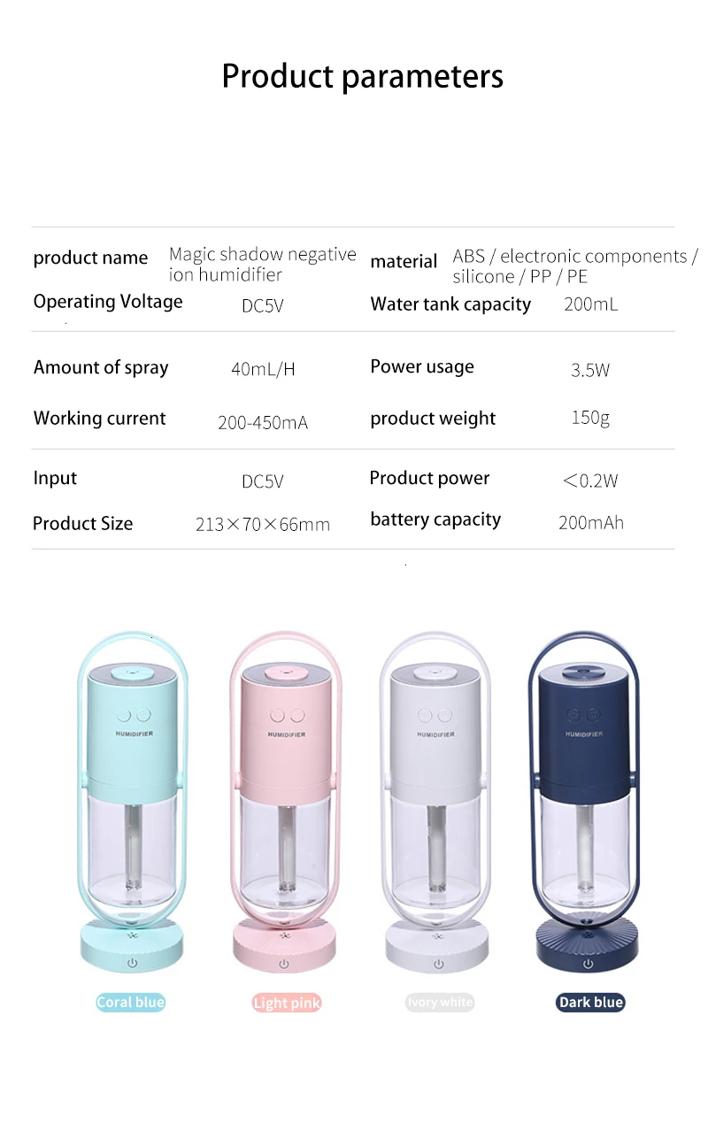 product nameMagic Shadow Negative Ion HumidifierProduct NumberAT286A001Material qualityABS+PP+PE+silica gel+electronic componentsproduct size70 *66 *213mmProduct packaging72 *72 *221mmSingle net weight150gStyle / colorPINK /WHITW /Coral blue/Deep sea blueЗаказала эту футболку, под свои джинсы. Товар пришел а отличном состоянии. Футболка идеально подошла по размеру. После стирки не села,... Читать отзыв полностью...