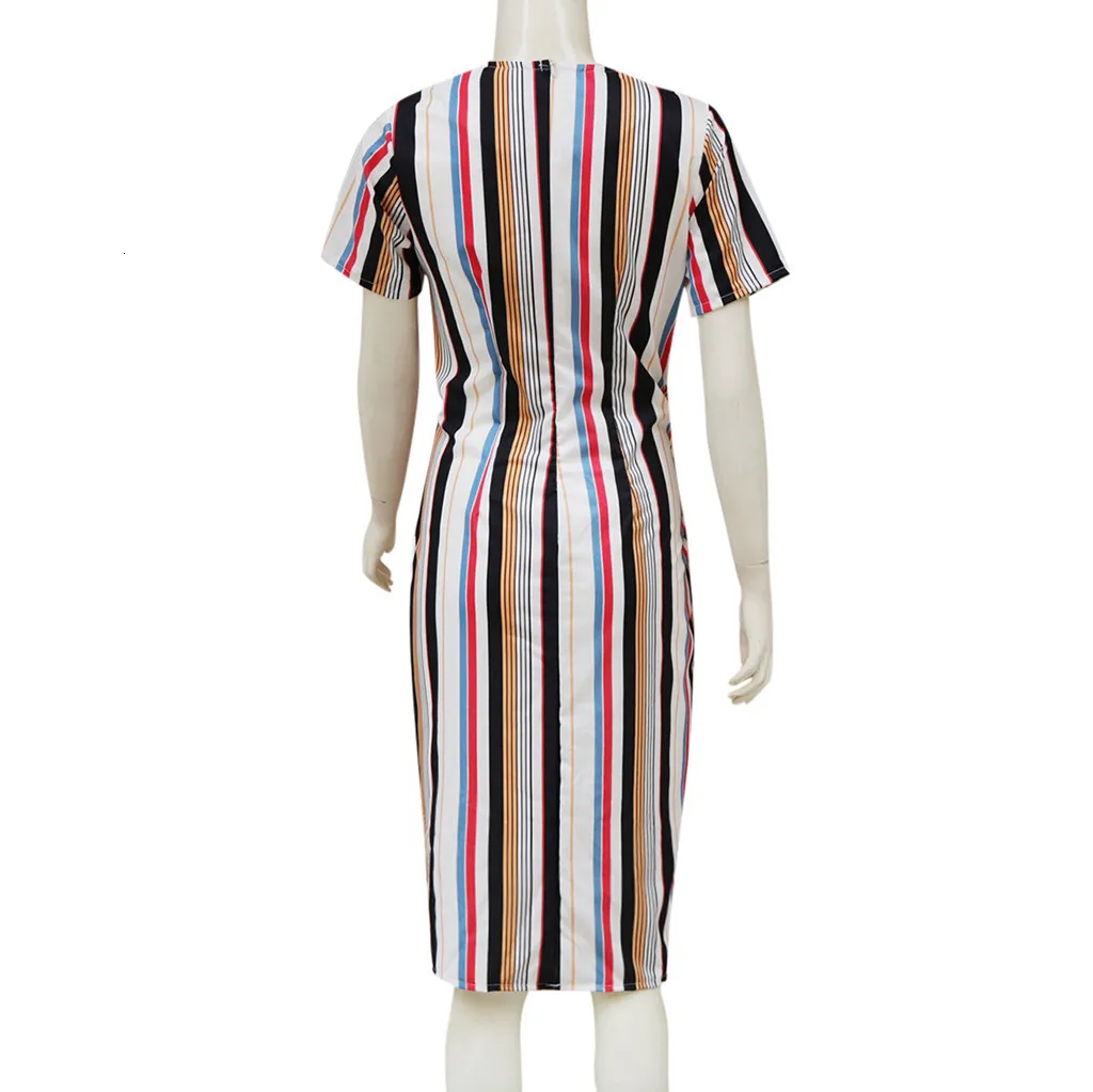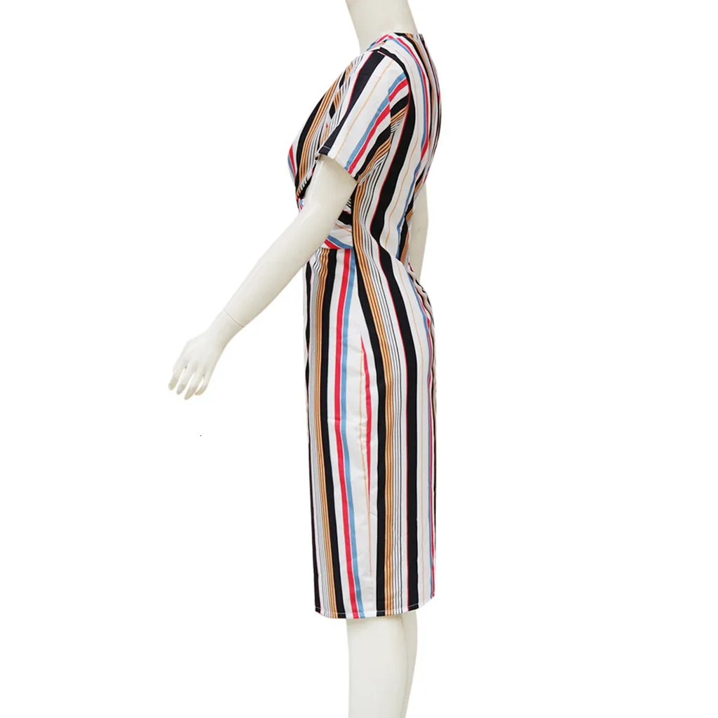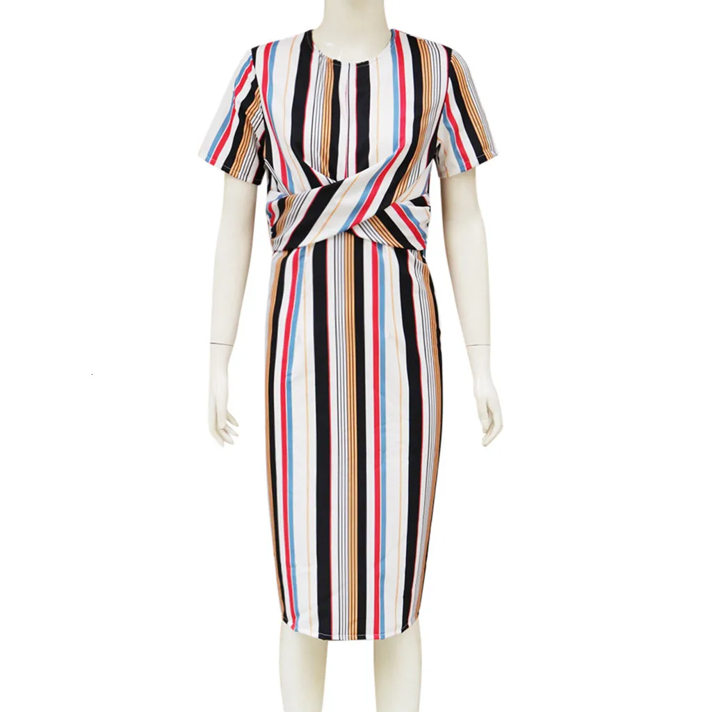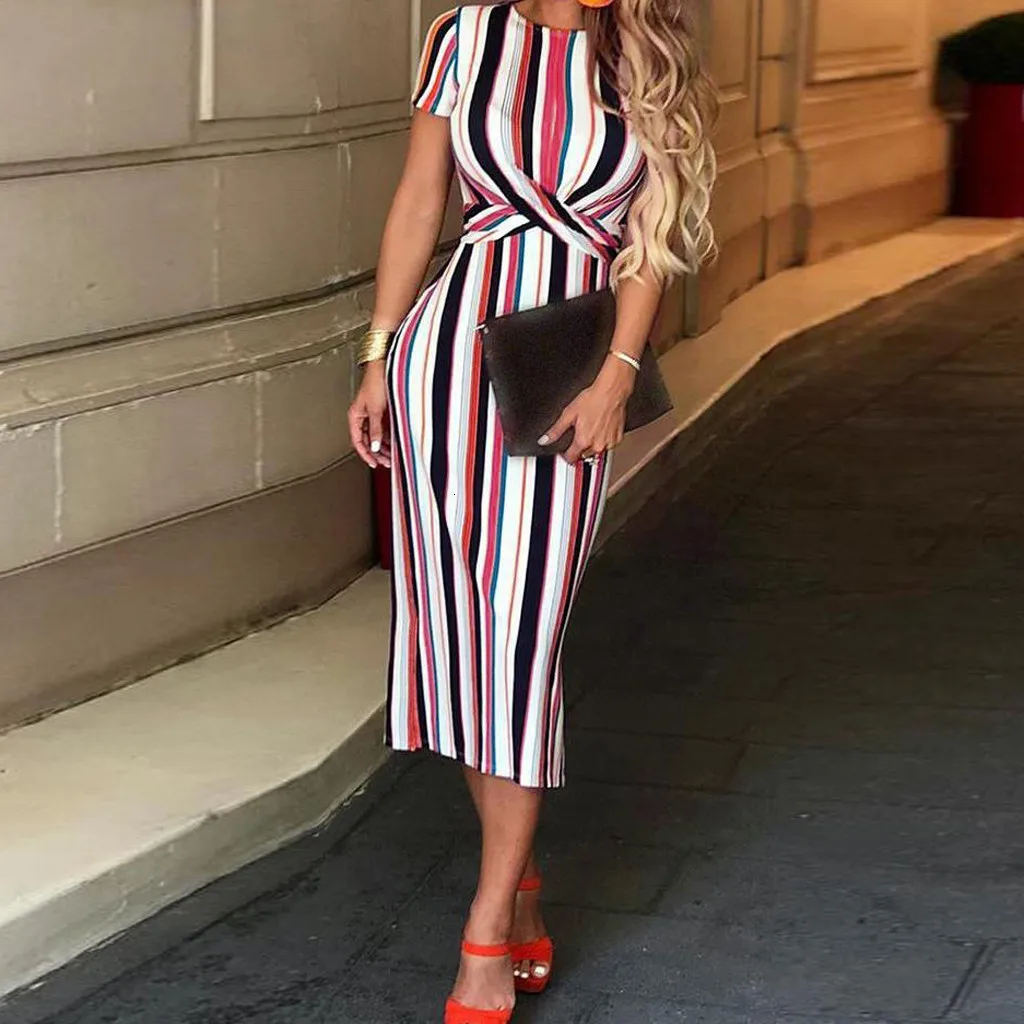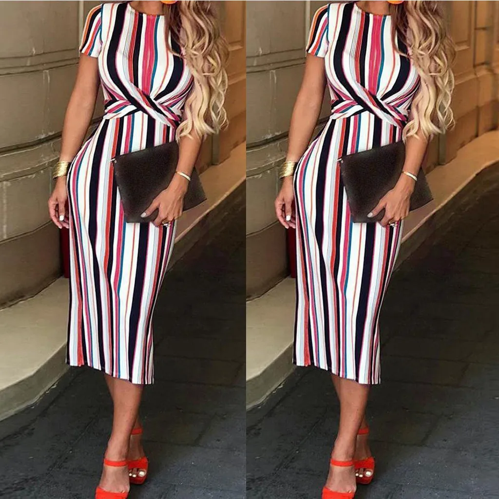 Fashion Women O Neck Short Sleeve Striped Sexy Bodycon Cocktail Prom Gown Dress