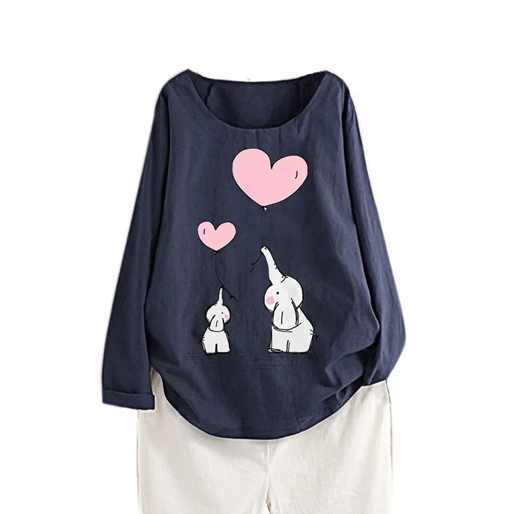 Повседневные многоцветные женские футболки с принтом в виде сердца, весенне-осенняя футболка для женщин с круглым вырезом, красивая футболка, топы из хлопка и льна