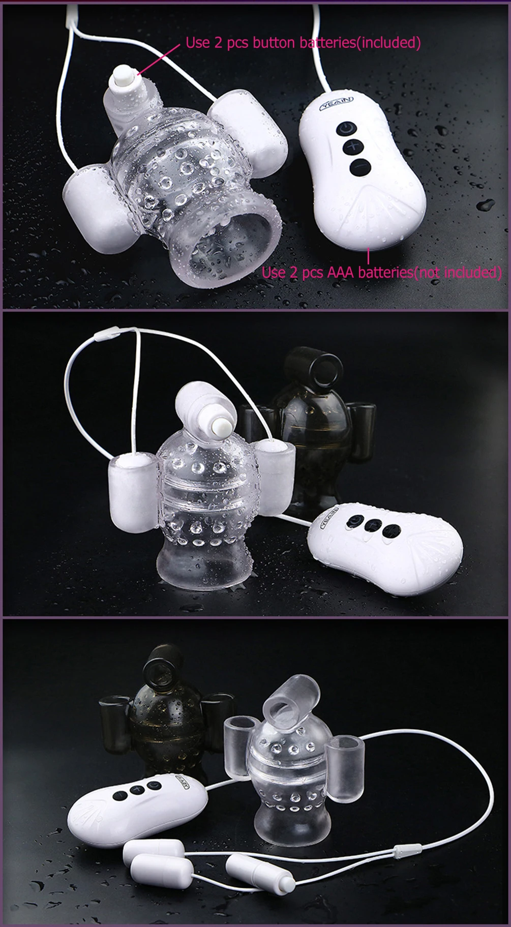 Material:ABS,TPEPowered:Use 2 pcs AAA batteries(not included)Waterproof: Life waterproofVibration mode: 11 kinds of vibration modeMaximum moise: Less than 50dbUse attention: If feel dry when using,please use lubriant on the glans penis before.Install 2 pcs new AAA batteries,Long press switch key for 3 seconds to start the remote control to open, shortly press the "+" or "-" key to change the vibration frequency,11 kinds of vibration mode turn cycle.Should be thorounghly cleaned before and after each use.Head cover can ce washed all over, eggs can't be soaked,only wipe clean, the remote controllerhandle is not waterproof.