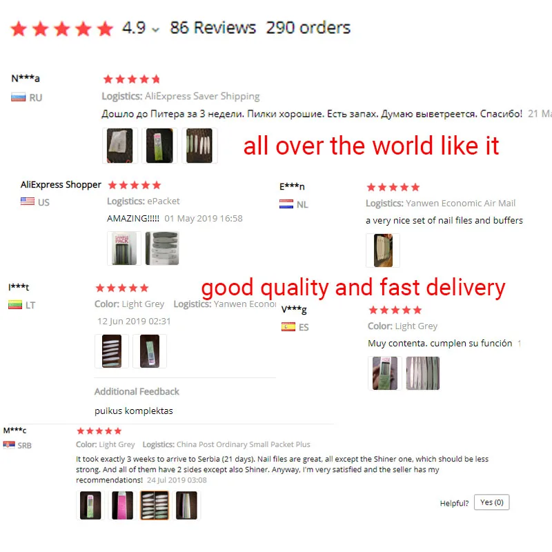Материал: ЭВА, наждачная бумага Содержимое: 6 стилей пилка для ногтей и буферная линза № 150: грубая песчинка, быстро полируется для длинных ногтей, быстро изнашивается короткая ручка, эластичная умеренная № 180: Средний песок, скорость помола умеренная, умеренная изысканность ручки резинки, эластичная умеренная № 240: мелкий песок, более медленная шлифовка, более тонкая ручка резинки, эластичная умеренная № 100/180: относительно крупный песок, подходит для людей, которые любят глубину поверхности ногтей № 220/280: песок относительно тонкий, подходит для людей с бледной текстурой поверхности ногтей № 1000/4000: подходит для использования в Лаке для ногтей, используется так же, как при использовании слишком яркого и блестящего масла