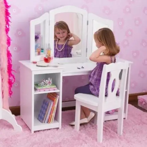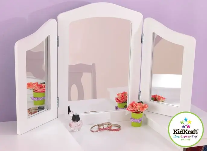Туалетный столик для девочки «Делюкс от KidKraft (КидКрафт) – это очень реалистичная уменьшенная копия полноценного женского косметического столика. Именно о таком столике мечтает каждая маленькая модница, ведь он позволяет девочке ощутить себя уже не просто ребенком, а взрослой и красивой девушкой.