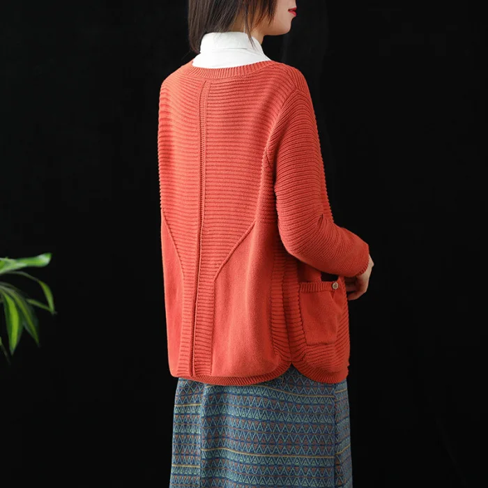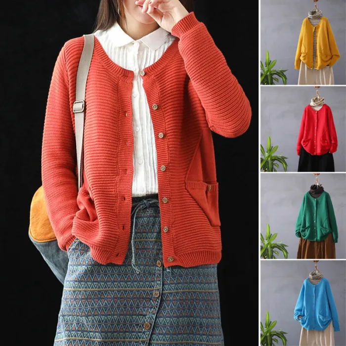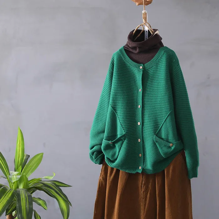 Женский вязаный кардиган с длинным рукавом, свитер на пуговицах, верхняя одежда с необычными карманами NFE99